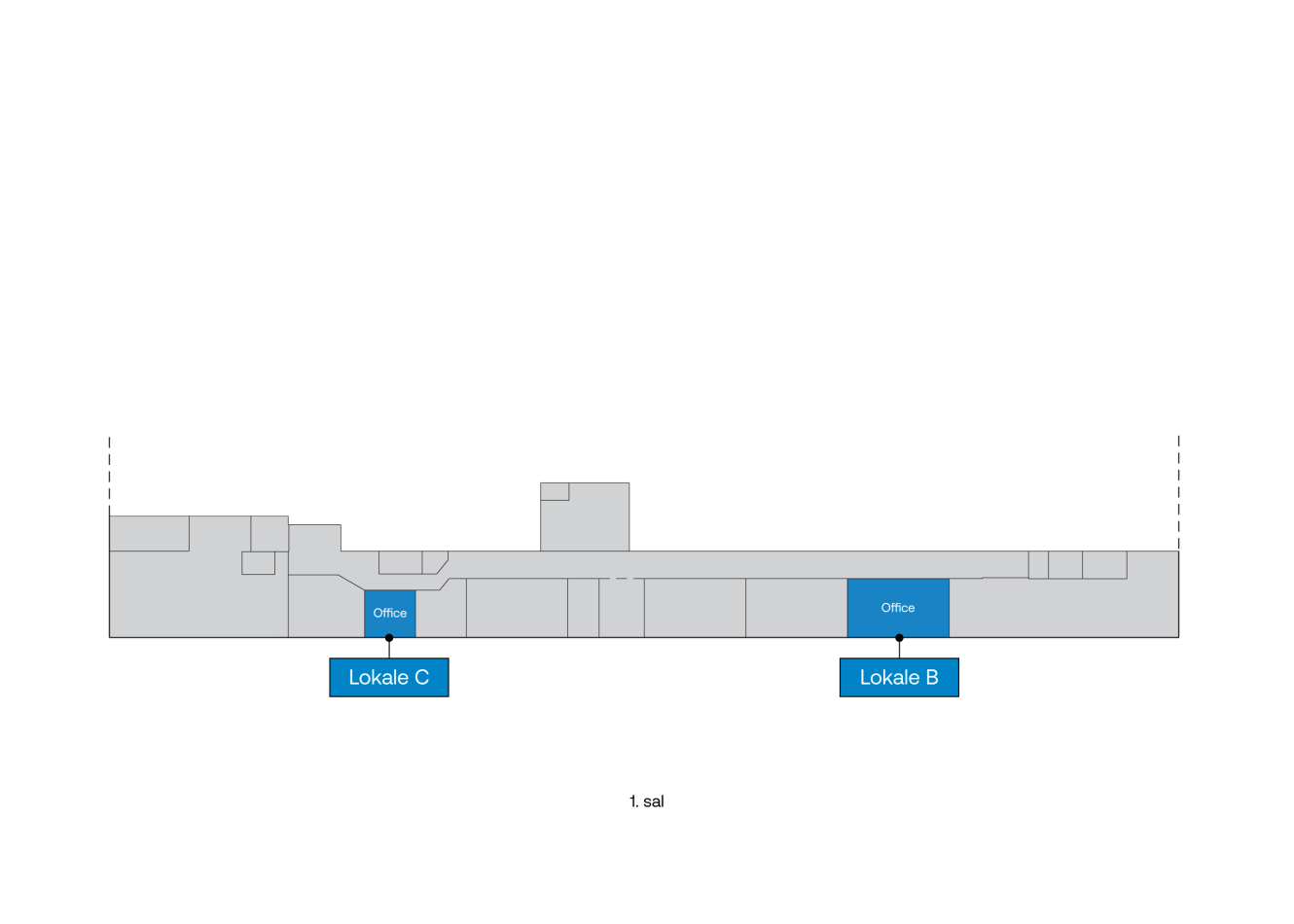 | Lokale C - kontor | m²:37 | Månedlig leje:2.930 kr. | Månedlige drifts- og varmeudgifter:694 kr. |