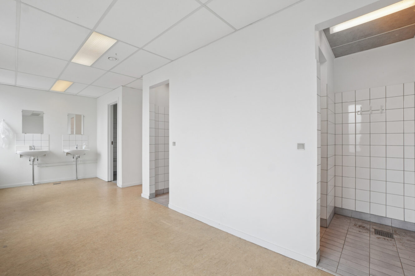Der er mulighed for at leje et højloftet lager på 1 946 m² i stuen inkl. lille kontorafsnit beliggende på 1. sal med to toiletter og tekøkken. Der er 2 ramper og 2 porte i niveau. Herudover, udbydes et kontor på 178 m² som er indrettet med ét stort rum og tre små separate kontor/mødelokaler samt et mindre depotrum. Lejemålet har eget tekøkken og toiletter.