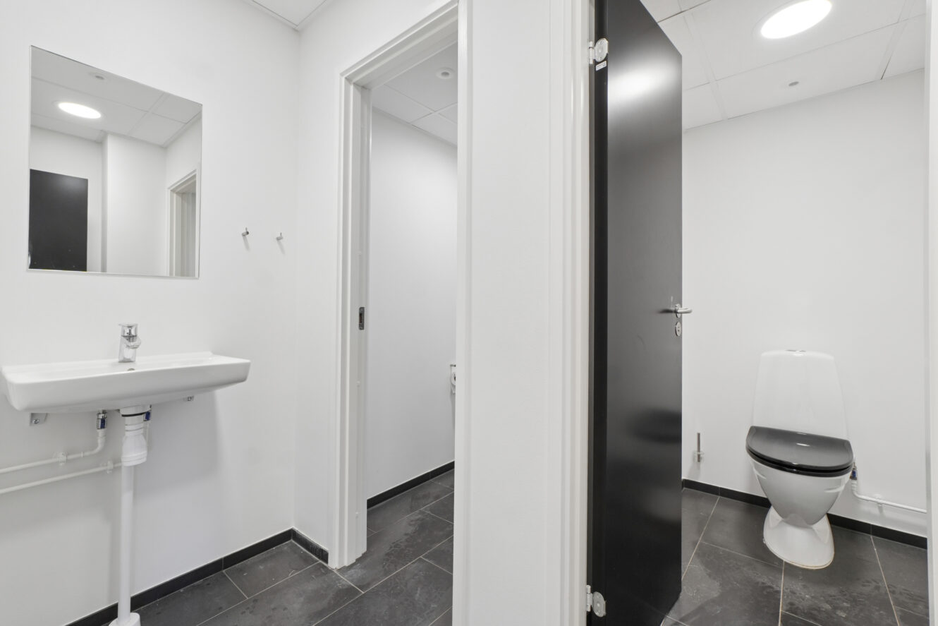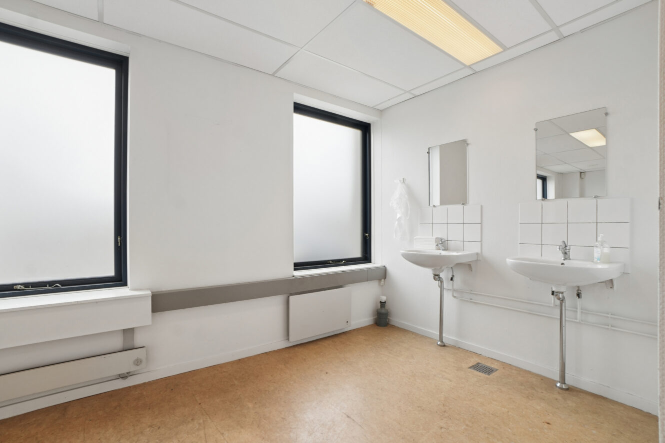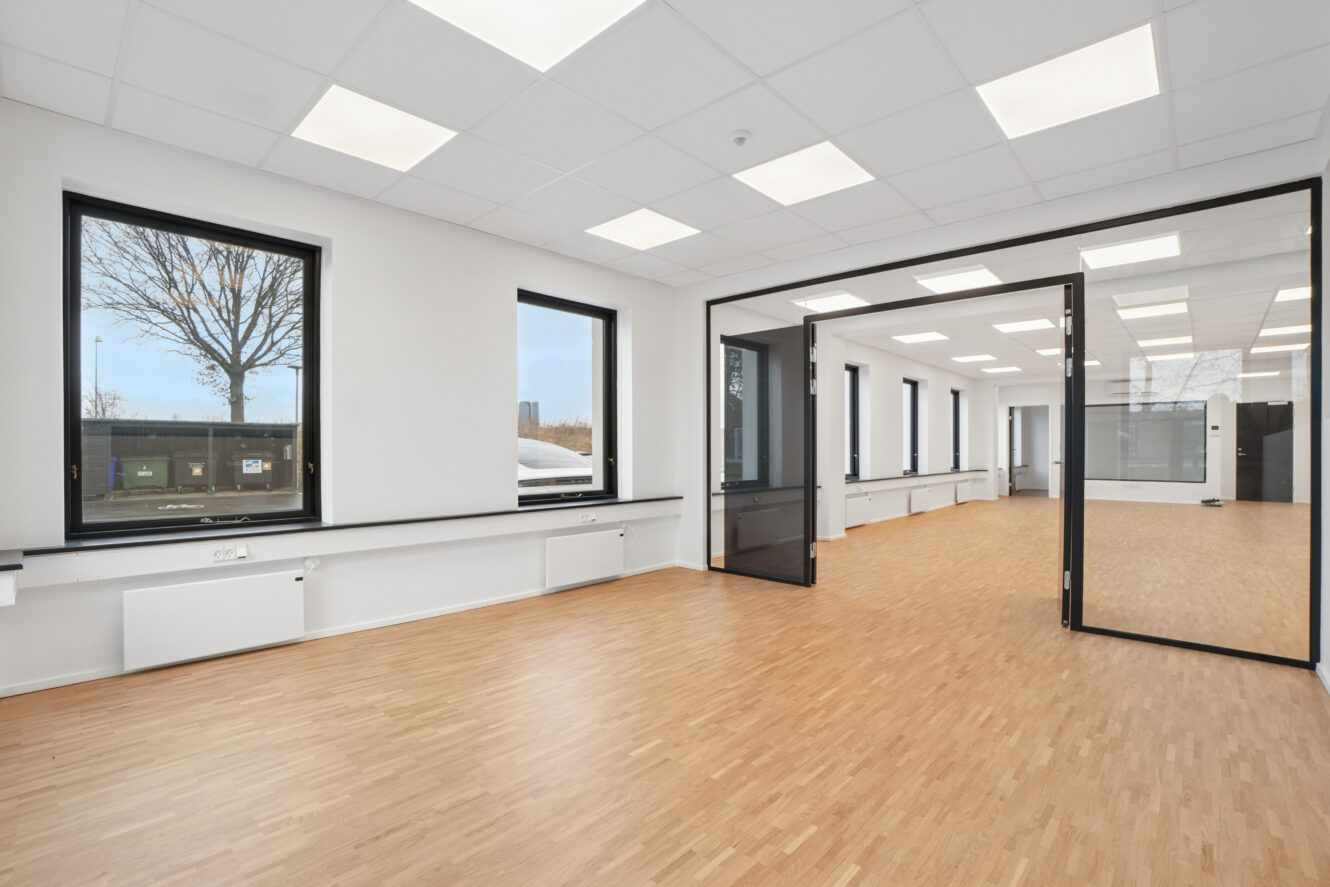 På 1. sal udlejes to kontorlokaler på hhv. 37 m² og 105 m². Kontoret på 105 m² har tilhørende omklædning m. bad på stueplan. Ejendommen har en særdeles fordelagtig placering med kun 0,5 km fra motorvej E20. Der er blot 450 m fra busrute 32, som forbinder området med Ørestad Station.