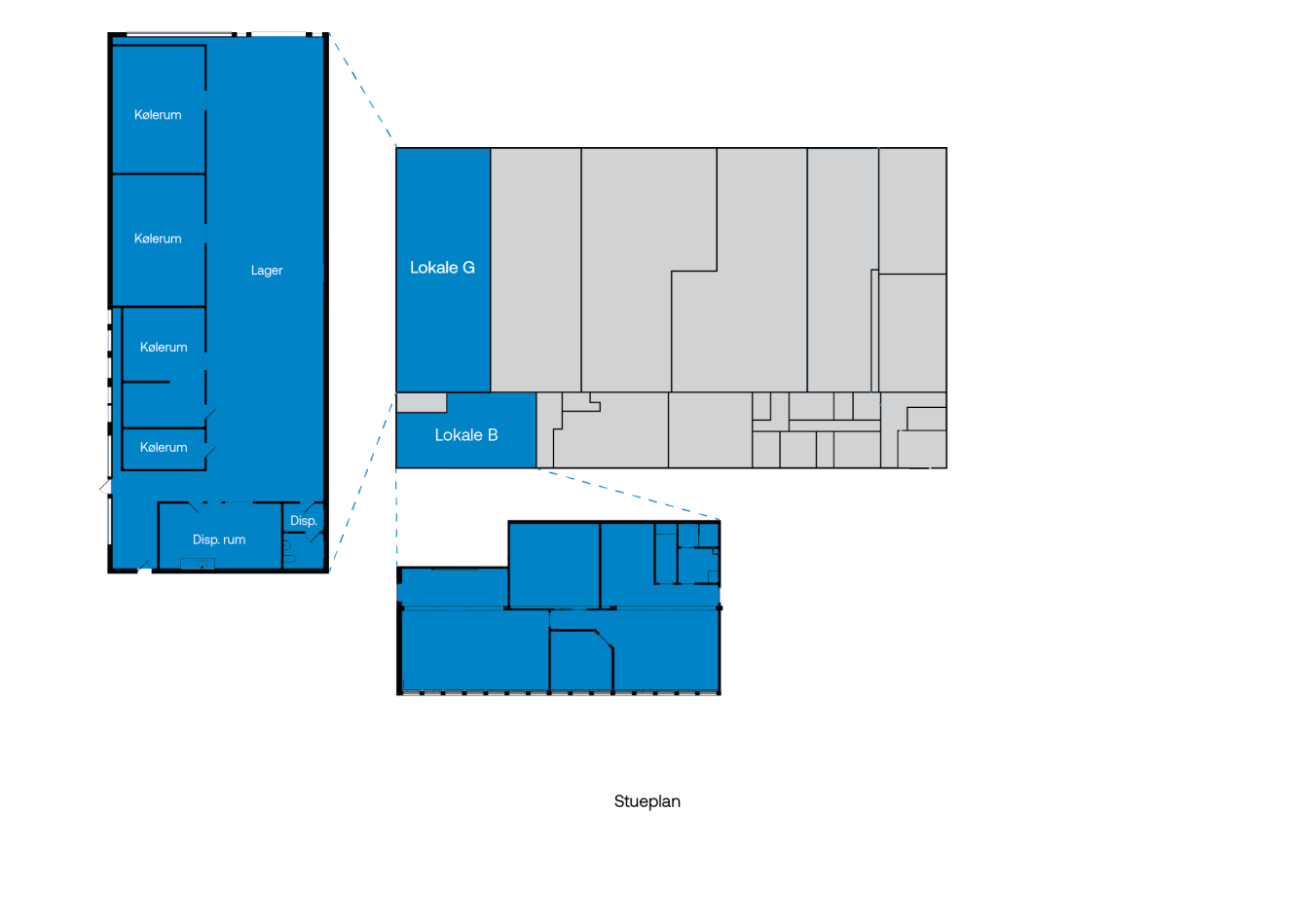 | Lokale | m² | Månedlig leje | Månedlige drifts- og varmeudgifter |