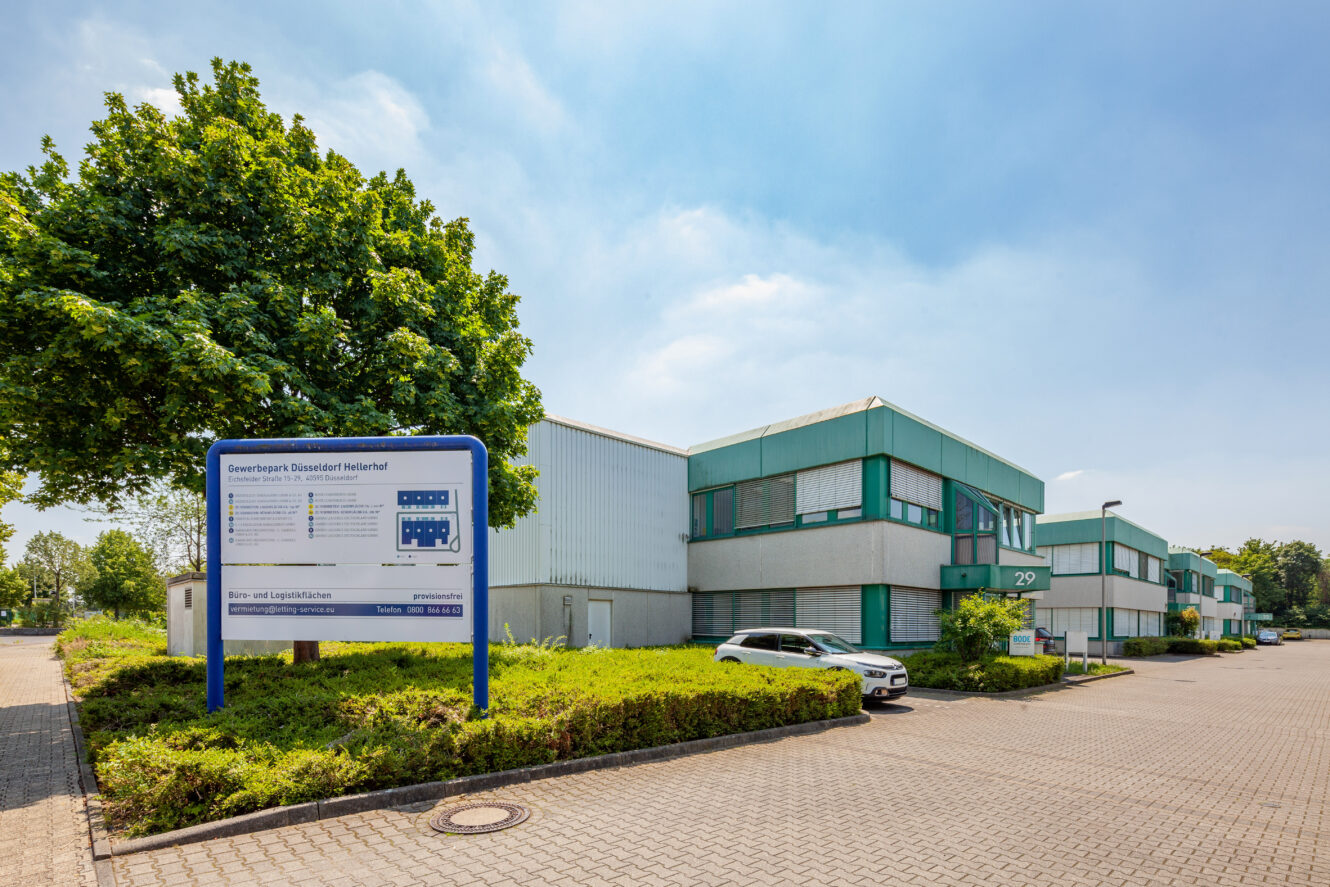 Die Liegenschaft befindet sich in der Eichsfelder Straße, einer zentralen Lage in einem vollständig ausgebauten und etablierten Gewerbegebiet von Düsseldorf. In unmittelbarer Umgebung liegt der Stadtteil Garath mit zahlreichen Restaurants und Einkaufsmöglichkeiten für den täglichen Bedarf. Verkehrstechnisch ist der Standort optimal angebunden: Über die B 8 (Frankfurter Straße) besteht ein direkter Anschluss, und die beiden nächstgelegenen Auffahrten zur A 59 sind innerhalb von fünf Minuten erreichbar. Zudem ist der Standort durch den öffentlichen Personennahverkehr sehr gut erschlossen, was ihn für Mitarbeitende und Besucher gleichermaßen attraktiv macht.