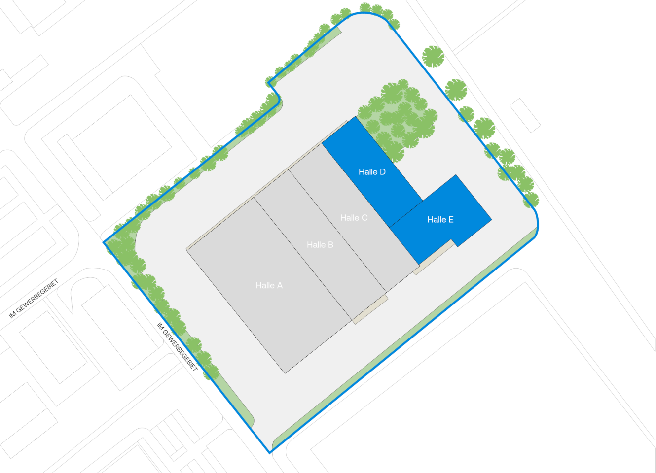 | Halle E | Flächenart:Halle | Größe (m²):1.413 | Verfügbarkeit:Sofort | Anmerkungen:Kalthalle |