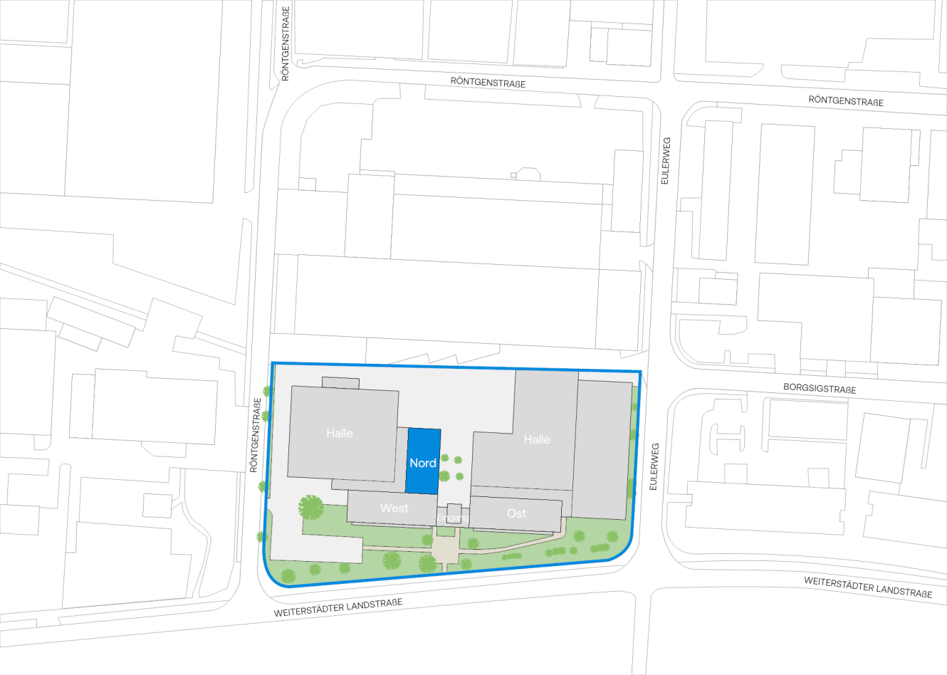 Das Gebäude befindet sich in attraktiver Lage im Gewerbegebiet Darmstadt-Arheilgen. Für Mitarbeiter und Besucher stehen zahlreiche Pkw-Stellplätze sowohl im Außenbereich als auch in der Tiefgarage zur Verfügung.