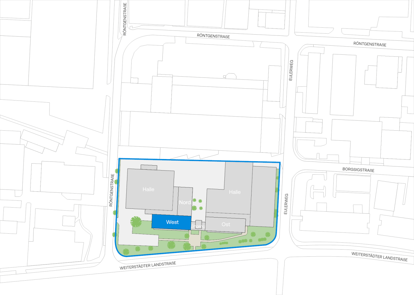 | Büro, 1. OG (Westtrakt) | Flächenart:Büro | Größe (m²):388 | Verfügbarkeit:Sofort |
