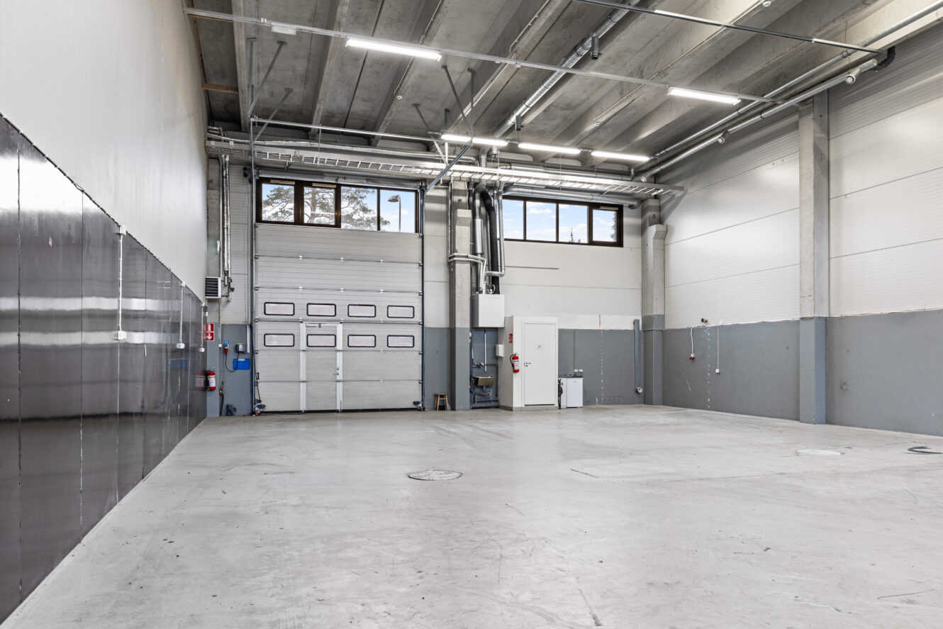 | Varasto | m²:220 | Lisätietoja:Selkeä nosto-ovellinen varastotila, jossa kaksi lattiakaivoa ja wc. Vapaa korkeus 5-6 metriä |