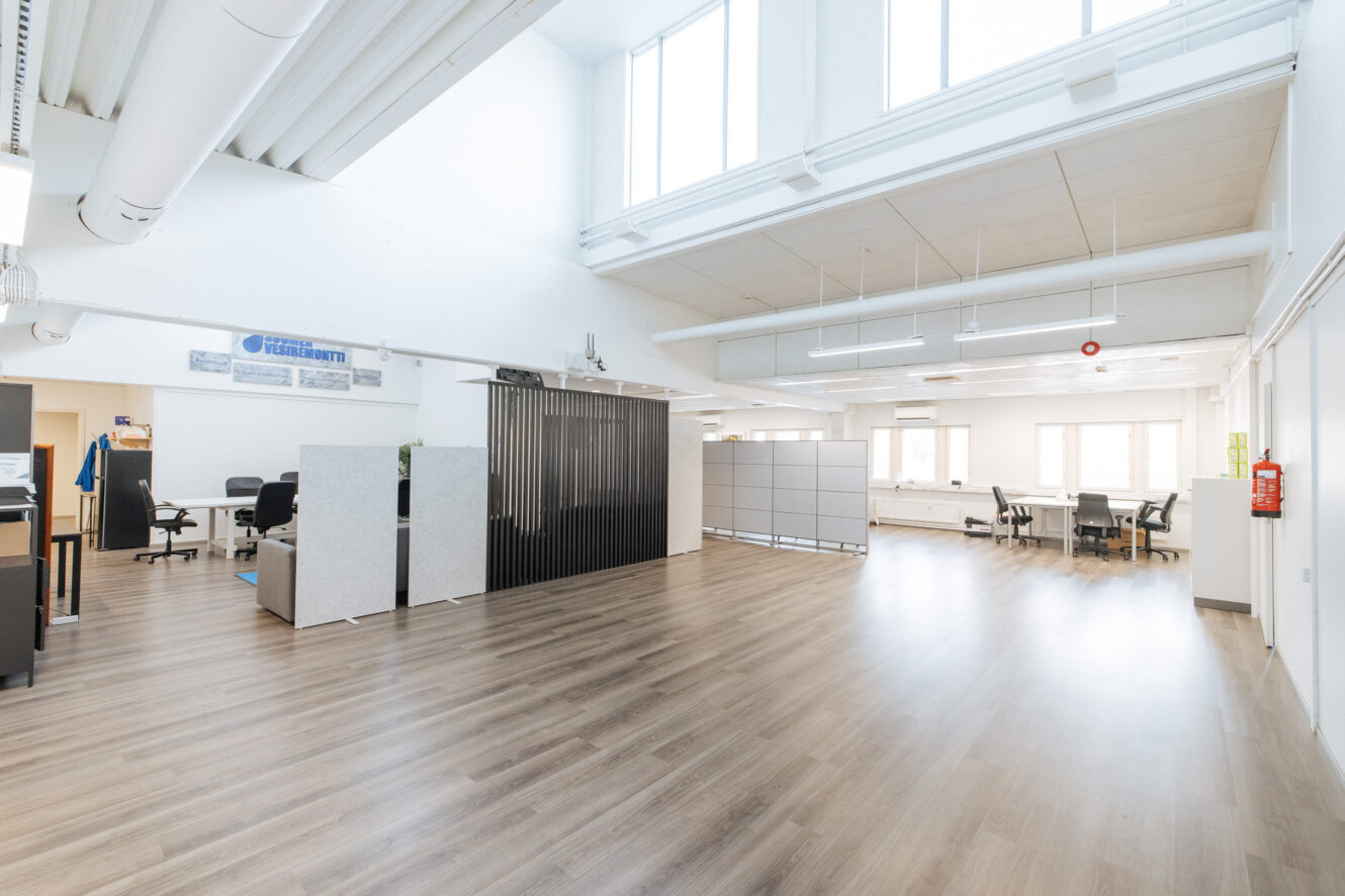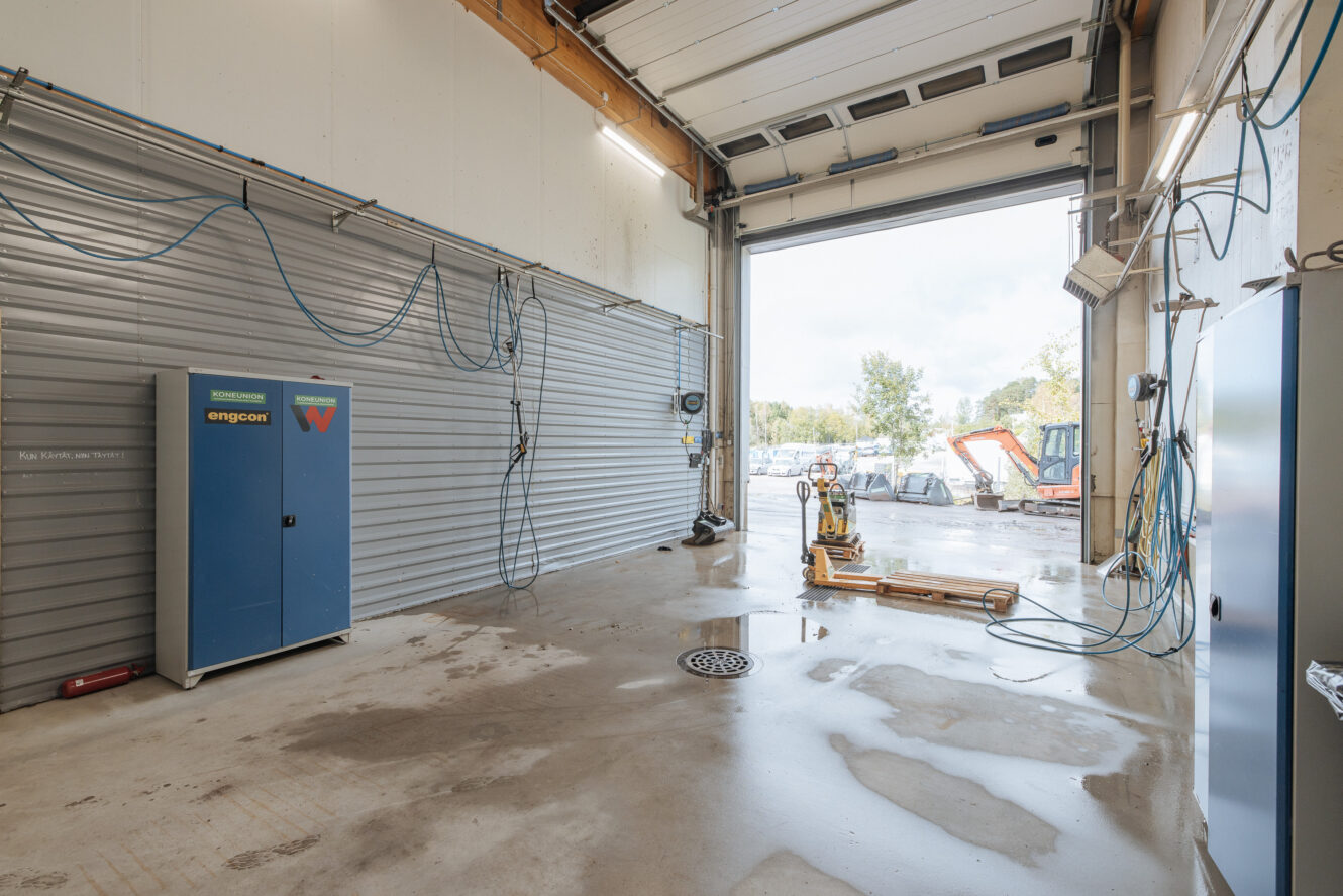 | Varasto, toimisto | m²:1 948 | Lisätietoja:Maantason isot nosto-ovet (n. 4m x 4.3m). Kaksi erillistä hallia, sos.tilat, toimistotilat 1. ja 2. kerroksessa. Iso piha-alue (yli 2000 m²) mikä vuokrataan sisätilan kanssa. Lattiakantavuus: uudella puolella vähintään 500 kg/m², vanhan puolen hallissa 1000 kg/m² |