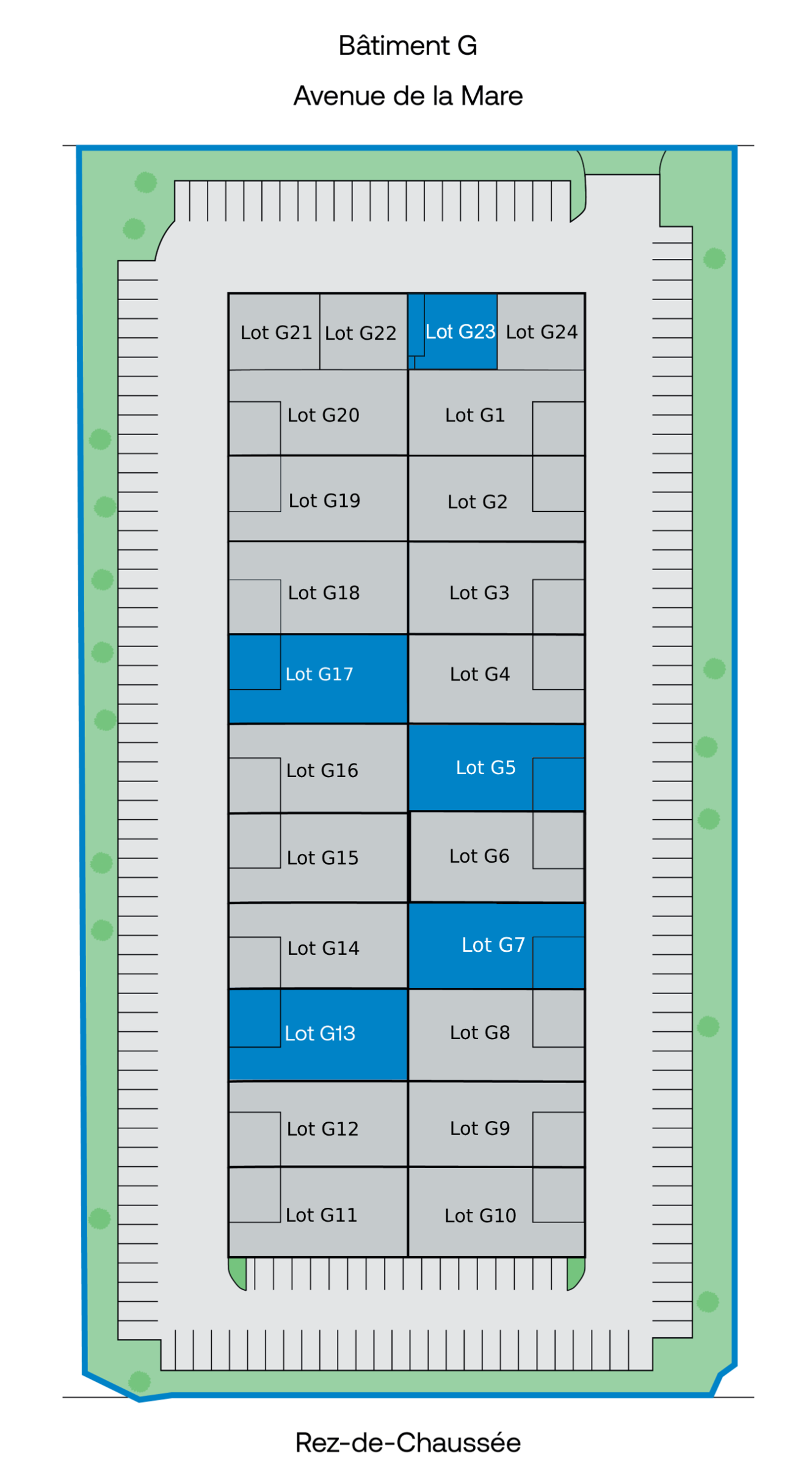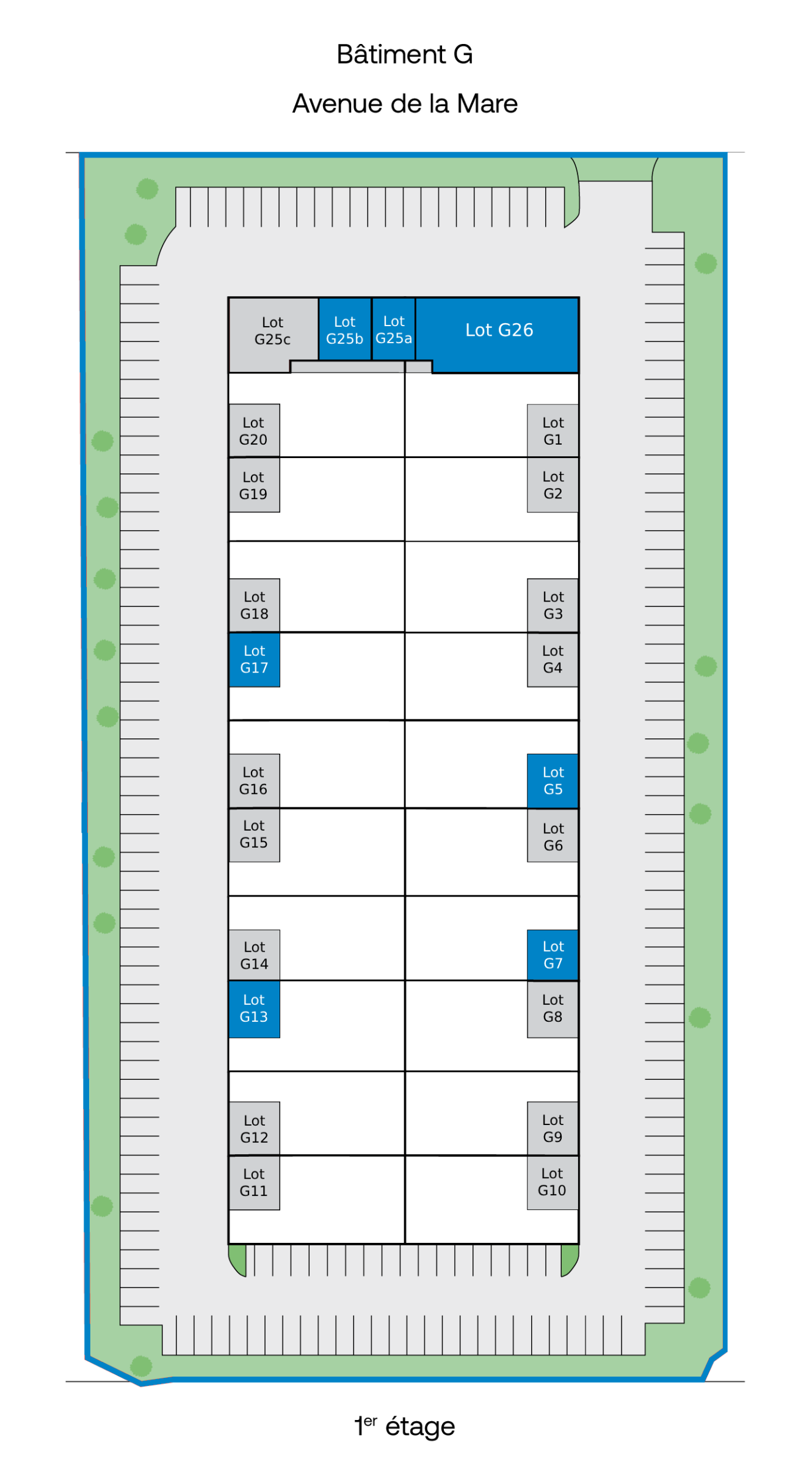 | Lot G17 | Typologie:Activités & bureaux | Surface totale (m²):336 | Loyer HT/HC (€/m²):100 | Charges (€/m²):16,5 | Taxes (€/m²):Taxe foncière : 15,3 Autres taxes : 3,3 | Commentaires:Dont 89 m² de bureaux |
