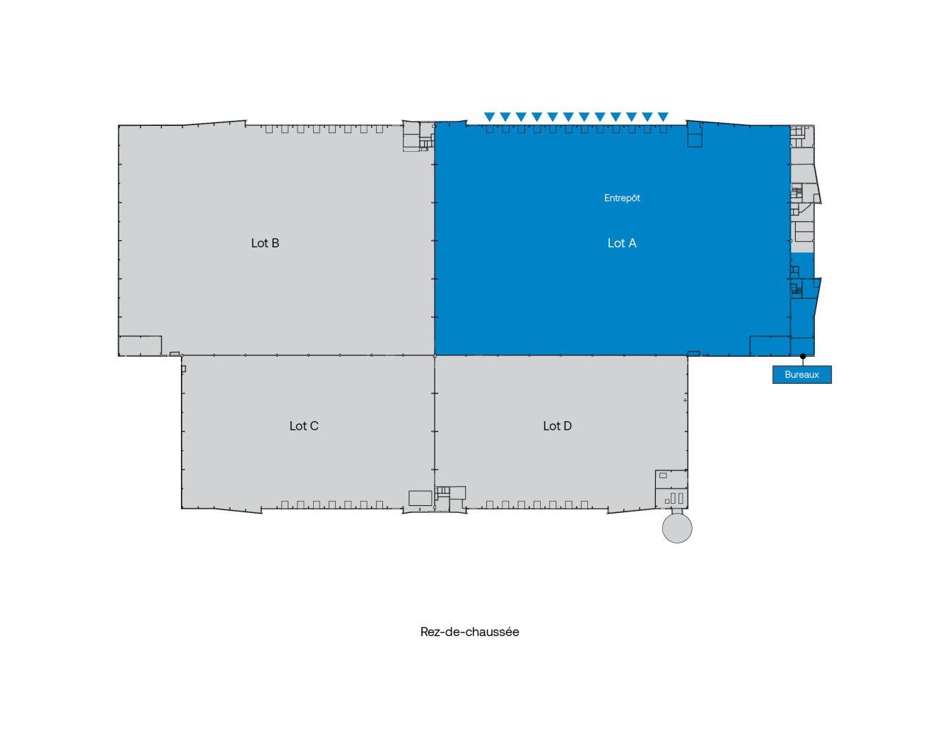 | Lot A & A1 | Typologie:Activités & bureaux | Surface totale (m²):8 460 | Loyer HT/HC (€/m²) :64 | Charges HT/HC (€/m²) :12,05 | Taxes (€/m²)<br />
