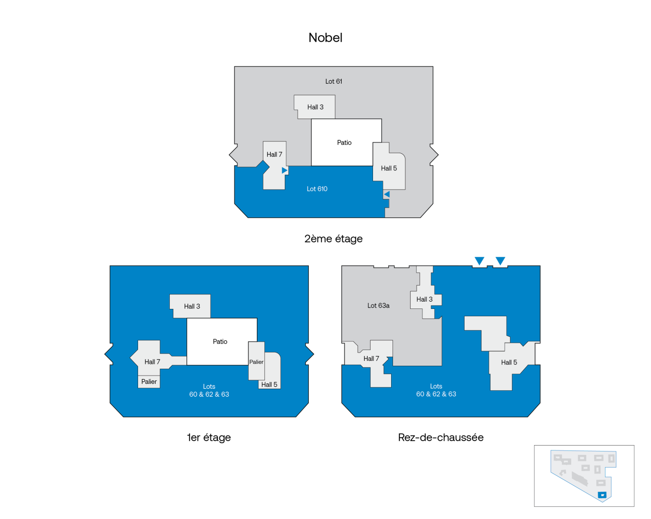 | Bâtiment Nobel | Typologie | Surface totale (m²) | Loyer HT/HC (€/m²) | Charges (€/m²) | Taxes (€/m²) | Commentaires |