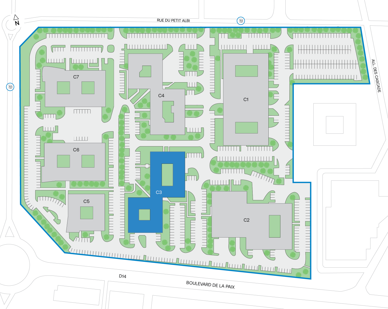 L’actif est idéalement situé à proximité immédiate de l’autoroute A15, sortie 12, permettant de rejoindre Paris – Porte de Clichy en 35 minutes. Le site est desservi par la ligne de bus 1224, accessible à l’entrée du parc, ainsi que par la gare de Cergy Saint-Christophe, à 10 minutes à pied, qui est reliée par le RER A et la ligne de Transilien L. Le bus 1224 permet également de rejoindre la gare d’Osny, desservie par la ligne Transilien J, en 13 minutes.