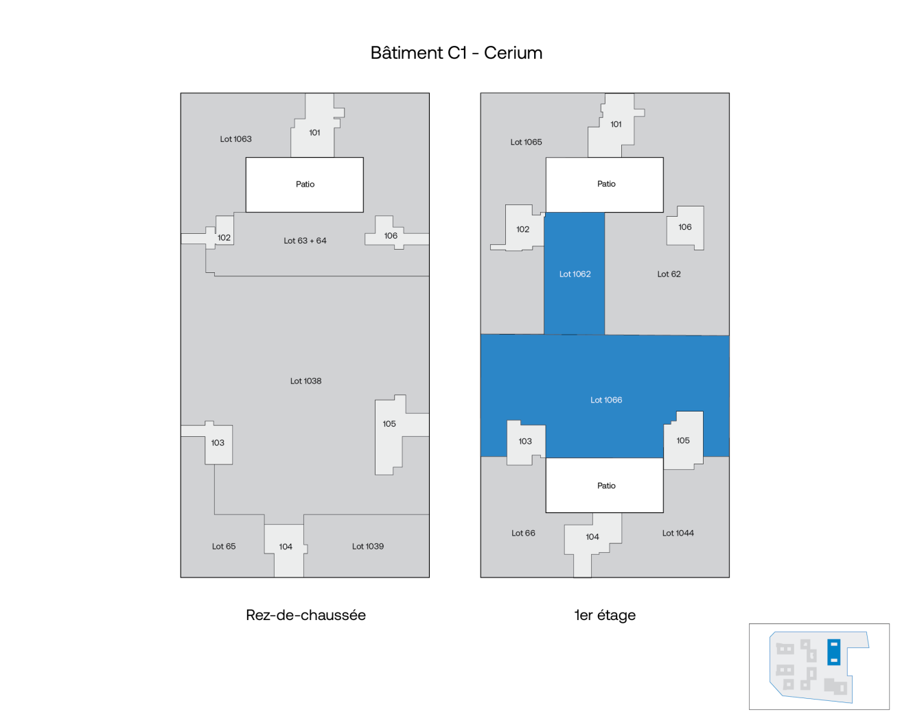 | Bâtiment C1 CERIUM | Typologie | Surface totale (m²) | Loyer HT/HC (€/m²) | Charges (€/m²) | Taxes (€/m²) | Commentaires |
