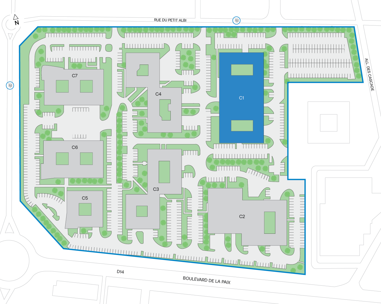L’actif est idéalement situé à proximité immédiate de l’autoroute A15, sortie 12, permettant de rejoindre Paris – Porte de Clichy en 35 minutes. Le site est desservi par la ligne de bus 1224, accessible à l’entrée du parc, ainsi que par la gare de Cergy Saint-Christophe, à 10 minutes à pied, qui est reliée par le RER A et la ligne de Transilien L. Le bus 1224 permet également de rejoindre la gare d’Osny, desservie par la ligne Transilien J, en 13 minutes.