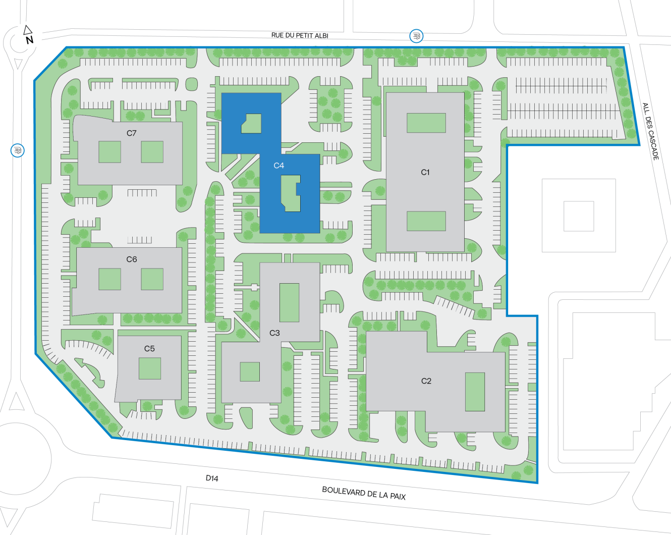 L’actif est idéalement situé à proximité immédiate de l’autoroute A15, sortie 12, permettant de rejoindre Paris – Porte de Clichy en 35 minutes. Le site est desservi par la ligne de bus 1224, accessible à l’entrée du parc, ainsi que par la gare de Cergy Saint-Christophe, à 10 minutes à pied, qui est reliée par le RER A et la ligne de Transilien L. Le bus 1224 permet également de rejoindre la gare d’Osny, desservie par la ligne Transilien J, en 13 minutes.