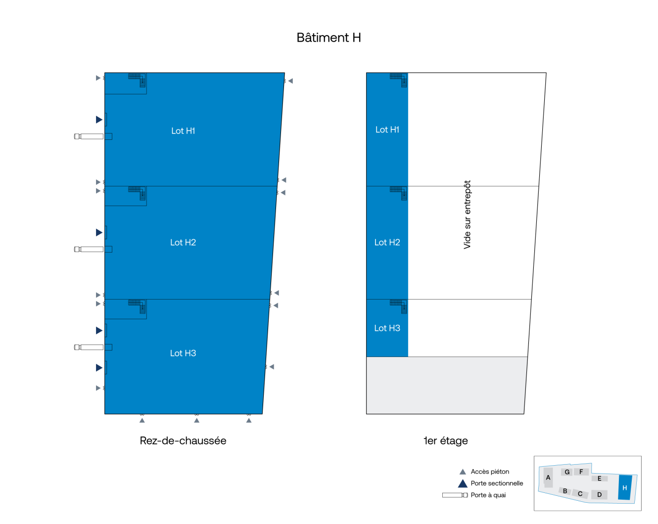 Selon les besoins des preneurs, les bâtiments A, G et H peuvent être loués dans leur intégralité.