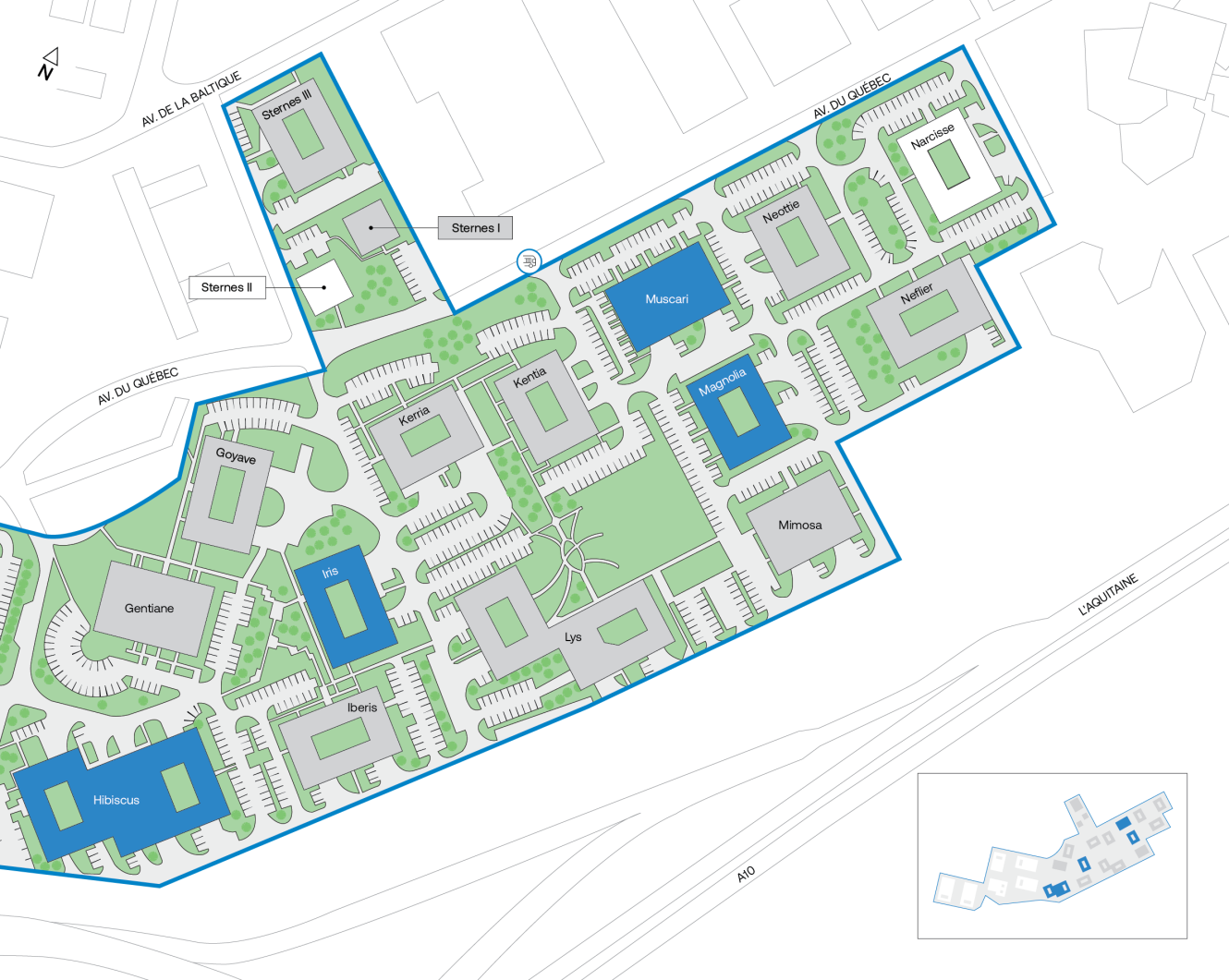 Au sein de la zone de Courtaboeuf, le parc est idéalement situé à proximité de l’autoroute A10 et des nationales N118 et N20. Le site est accessible par la gare Orsay Ville, desservie par le RER B qui se trouve à 8 minutes du site, et également par les lignes de bus 21 et 22 à la sortie du site.