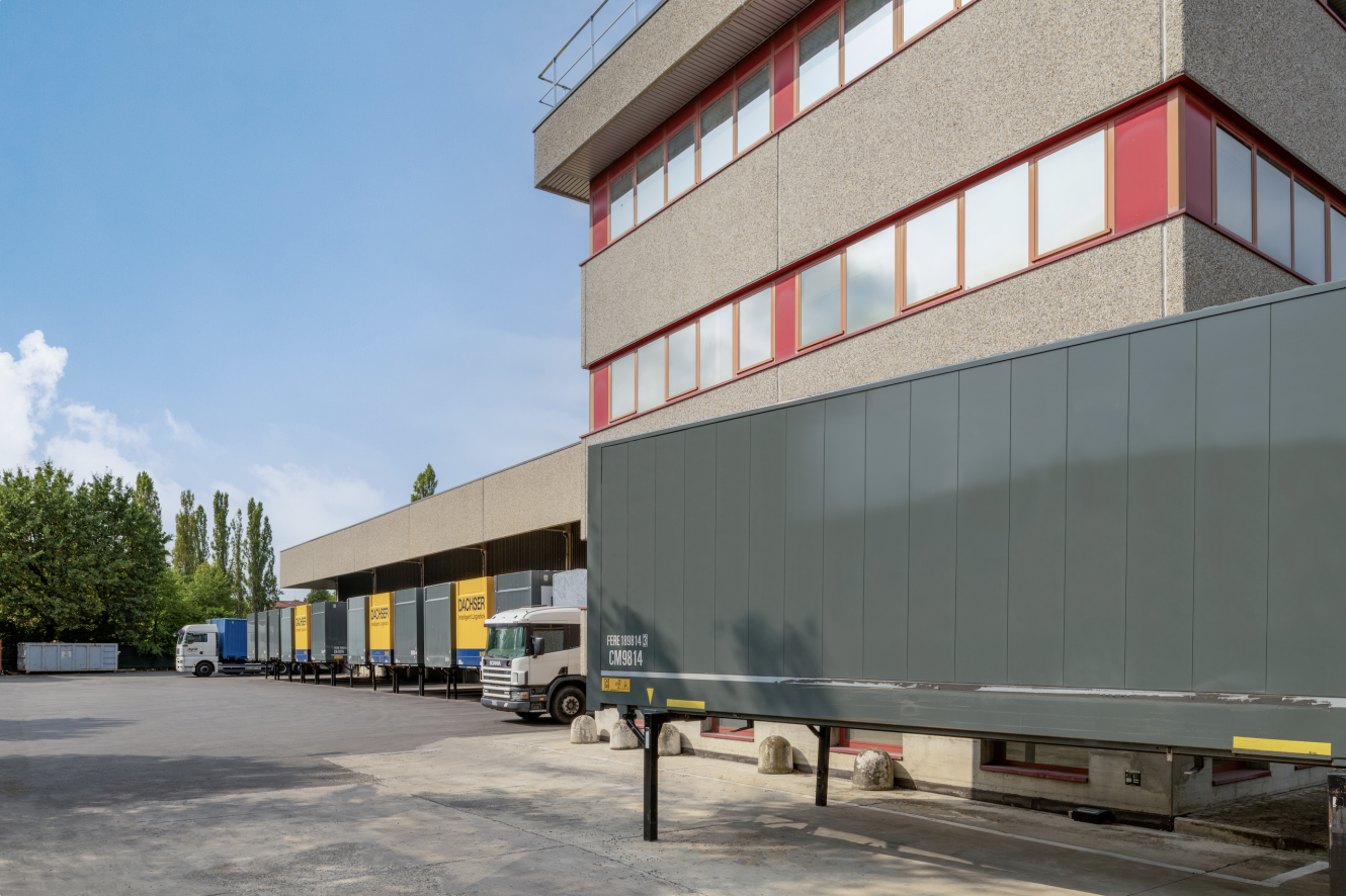 L’immobile è costituito da una porzione uffici recentemente ristrutturata, da un magazzino cross-dock con altezza sotto-trave di circa 6,2 m e da tettoie su doppio fronte con banchina di carico/scarico. A completare il complesso immobiliare, un’ampia area esterna completamente recintata e utilizzata per la movimentazione e il posteggio dei mezzi.