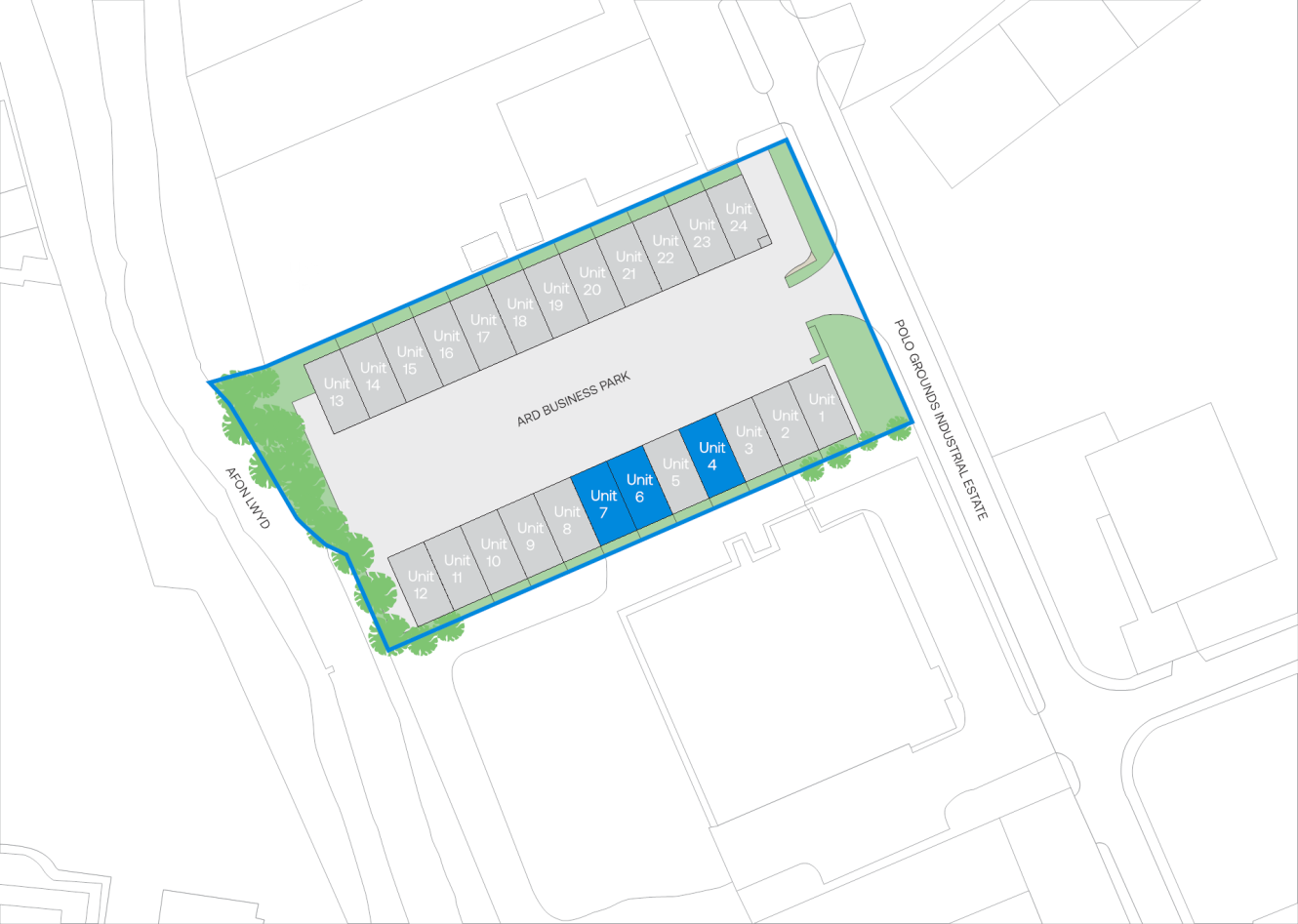 ARD Business Park is conveniently located on the well-established Polo Grounds Industrial Estate, just one mile southeast of Pontypool. The estate offers excellent connectivity, with direct access to the A4042 dual carriageway, linking swiftly to Junctions 25A and 26 of the M4—only seven miles away. This strategic position makes it easy for businesses to reach Cardiff, which is just 20 miles to the southwest, while also benefiting from strong regional transport links for staff, clients, and deliveries.