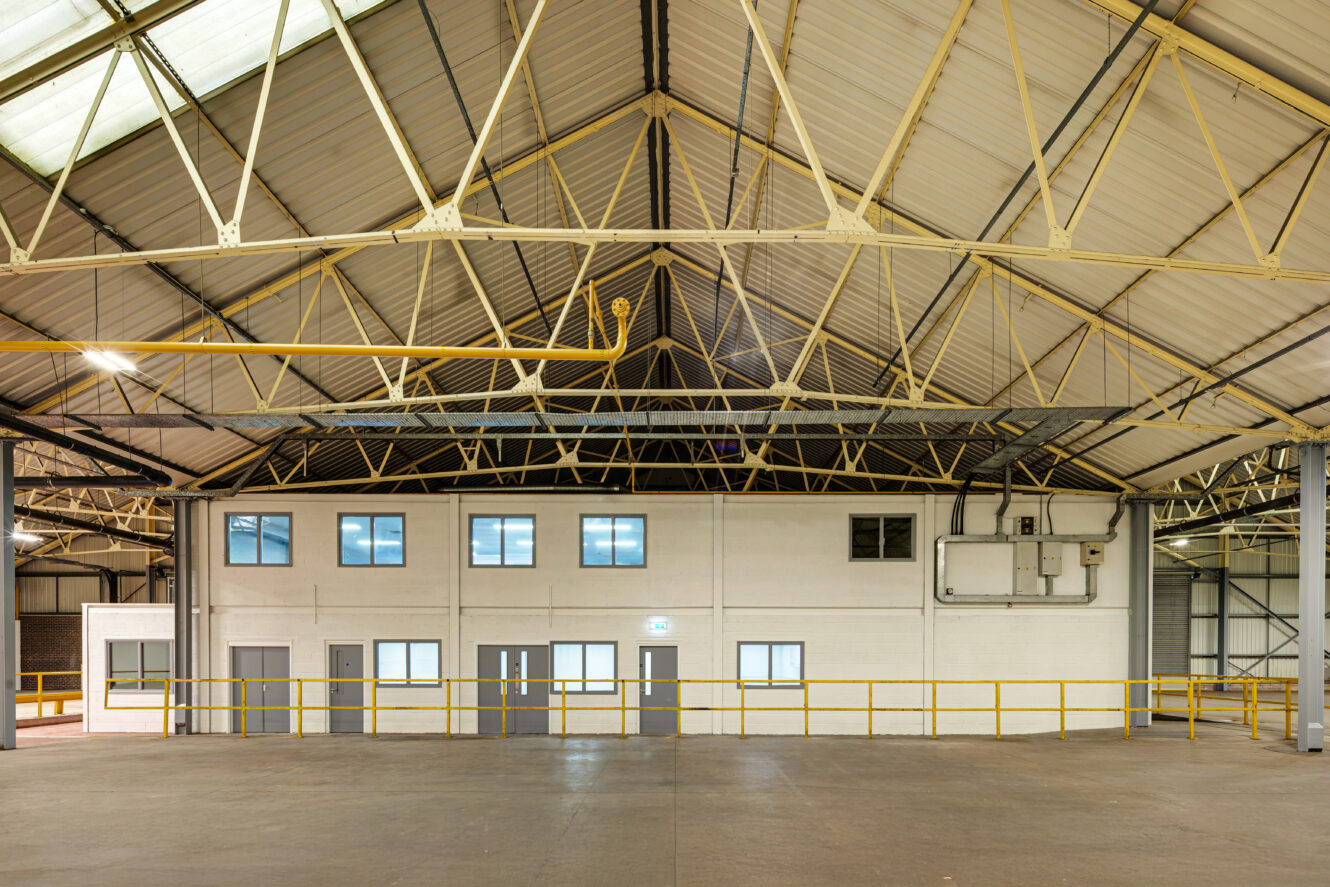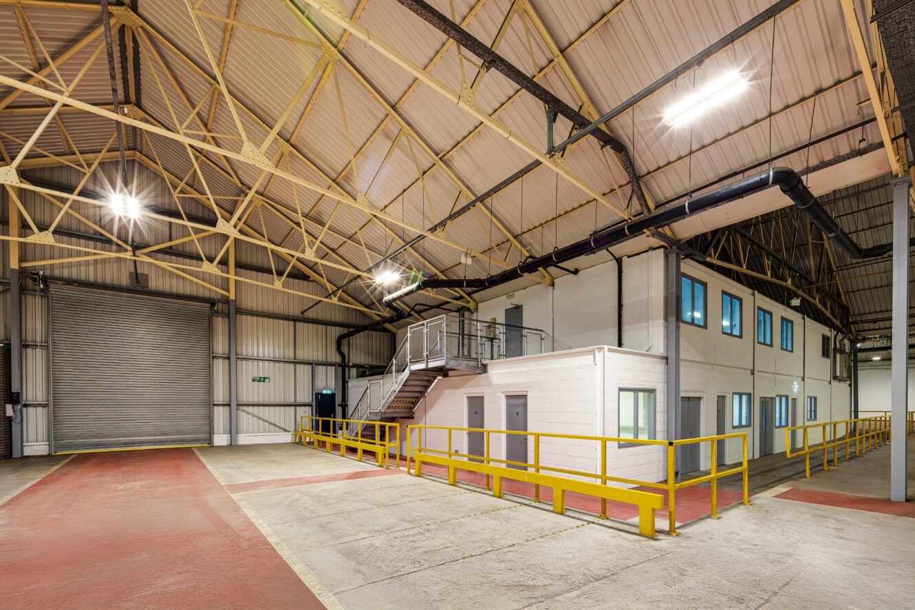 Detached industrial warehouse premises with ancillary offices comprising secure parking and yard space. A fitted warehouse, including racking, heating, lighting and sprinklers. The warehouse benefits from 3 ground level access doors, 5.4m internal eaves height and modern two storey office accommodation. Unit is to be refurbished.