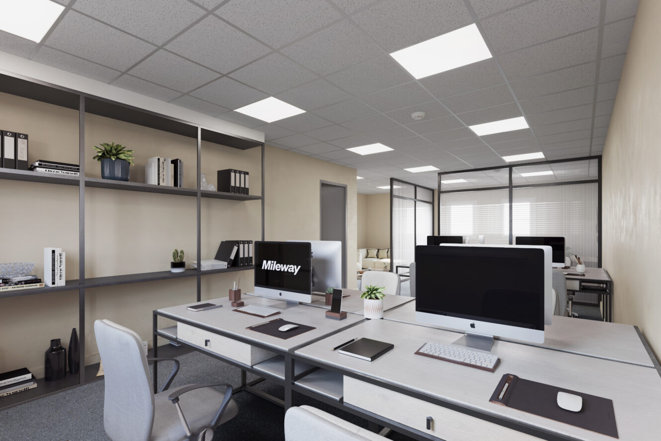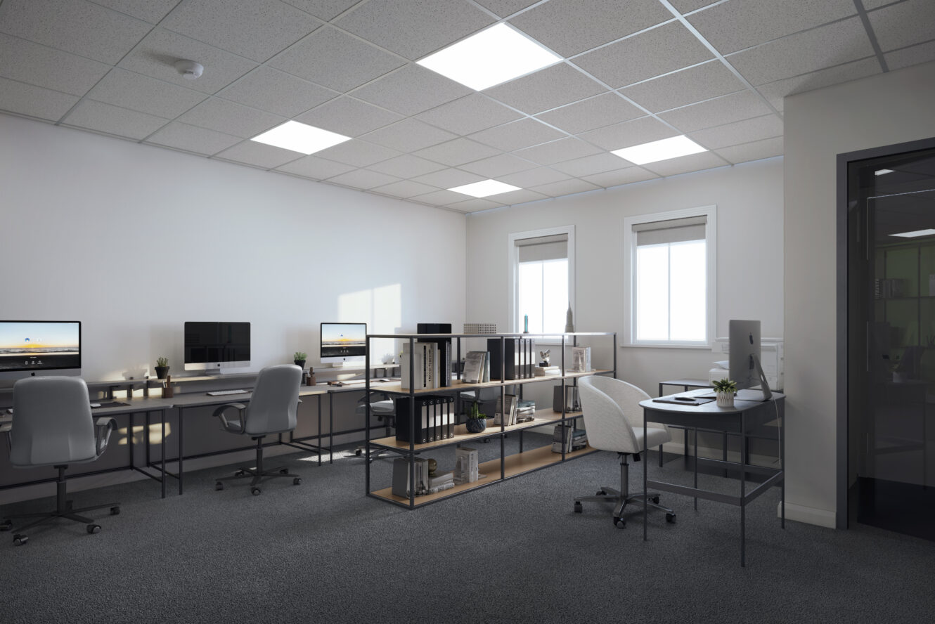 The development offers self-contained office suites ranging in size from approximately 1,482 sq ft to 4,787 sq ft. Each suite provides open-plan office accommodation, WC facilities and a kitchenette on the ground floor. The Offices are finished to a high standard with suspended ceilings, recessed lighting, carpeting and perimeter power trunking. Superfast broadband is available, and occupiers benefit from 24-hour access, on-site security and a reception area. The landscaped courtyard setting includes dedicated car parking, with each suite typically allocated around five spaces.