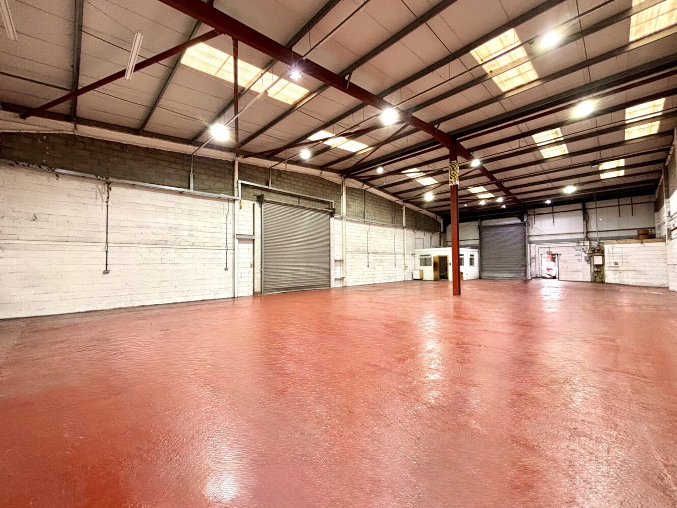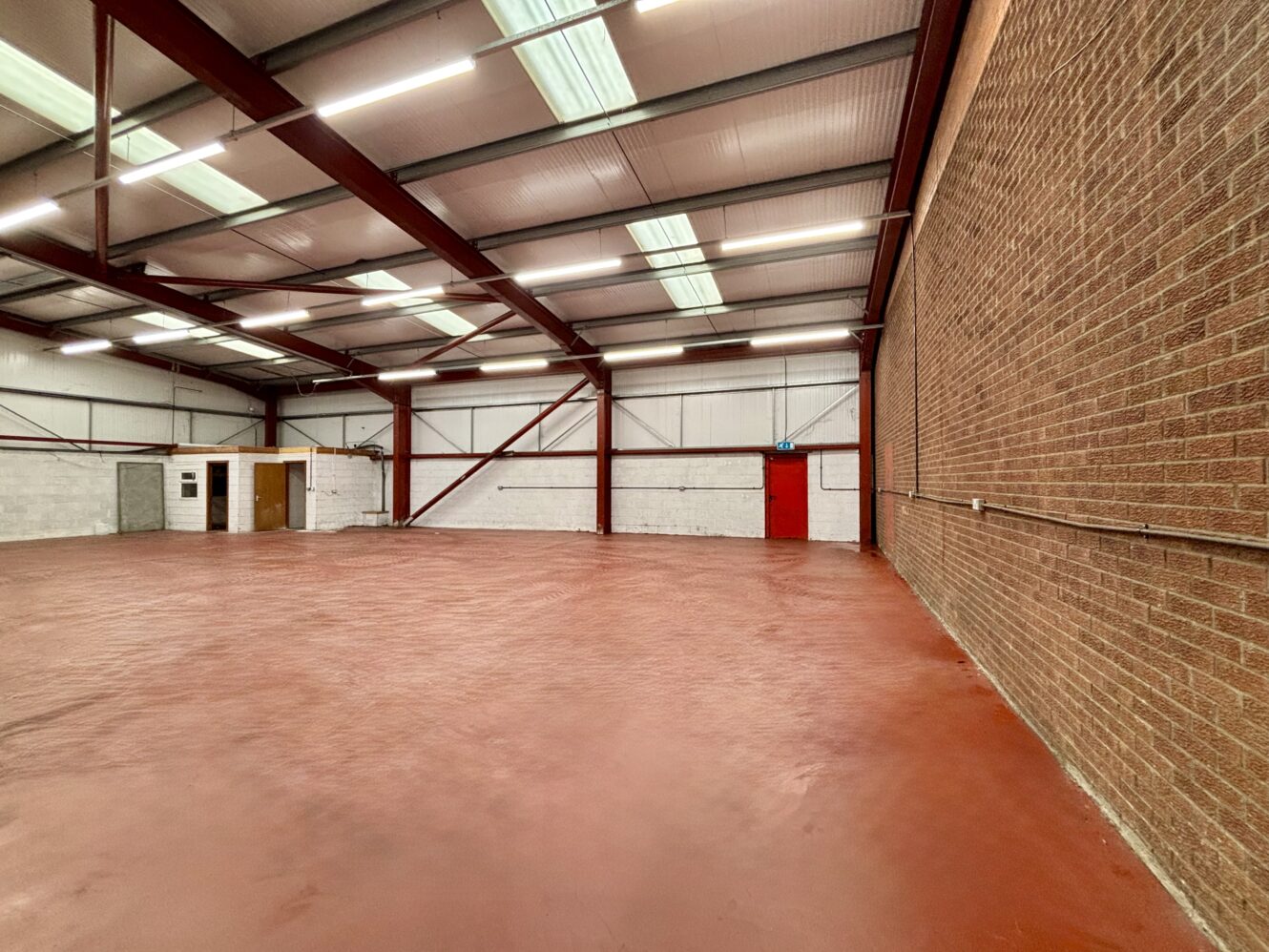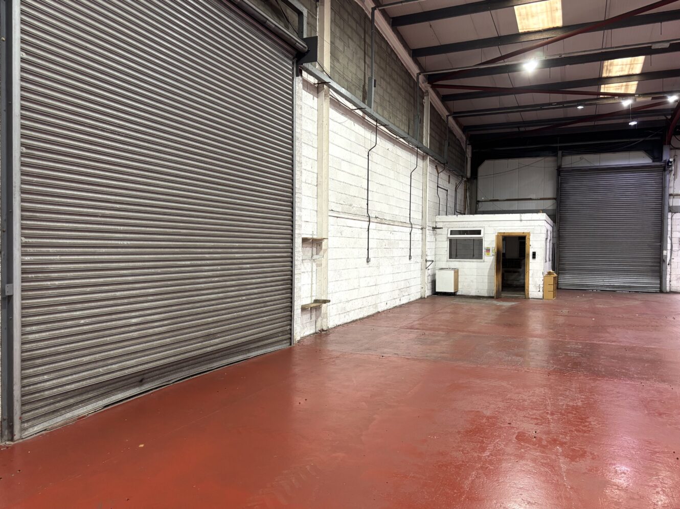 Internally, the units offer open-plan warehouse space with integrated office areas, enhanced by translucent roof panels that provide excellent natural daylight. The units benefit from eaves height of 4 metres, rising to 5 metres at the pitch, and is fitted with energy-efficient LED lighting. Additional amenities include separate male and female WC facilities, along with mains connections to water and three-phase electricity.