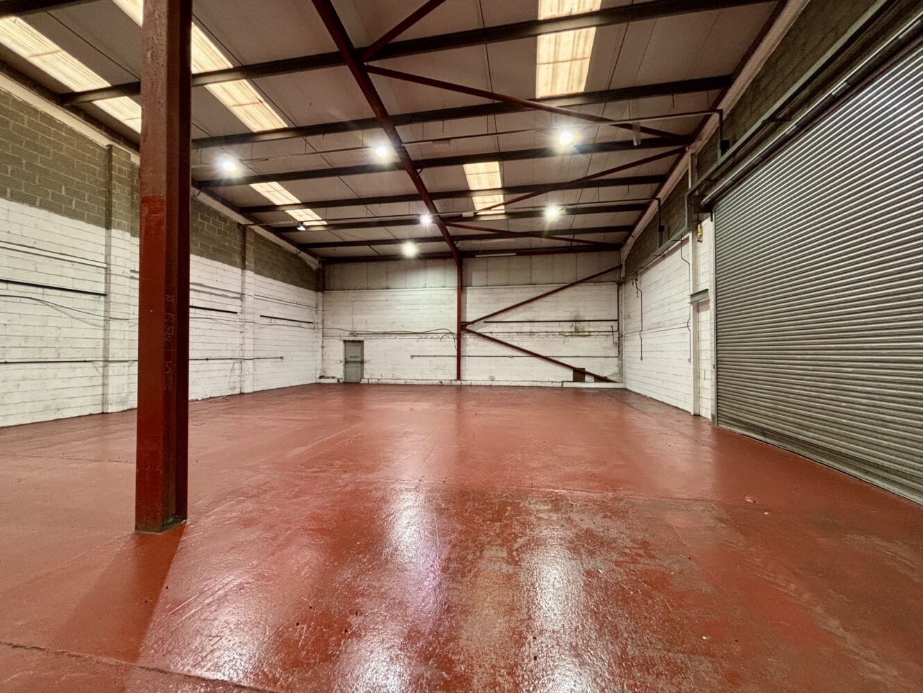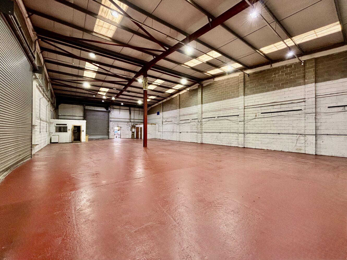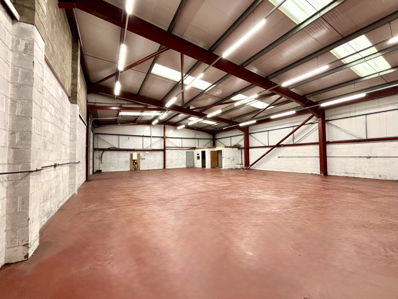 Internally, the units offer open-plan warehouse space with integrated office areas, enhanced by translucent roof panels that provide excellent natural daylight. The units benefit from eaves height of 4 metres, rising to 5 metres at the pitch, and is fitted with energy-efficient LED lighting. Additional amenities include separate male and female WC facilities, along with mains connections to water and three-phase electricity.