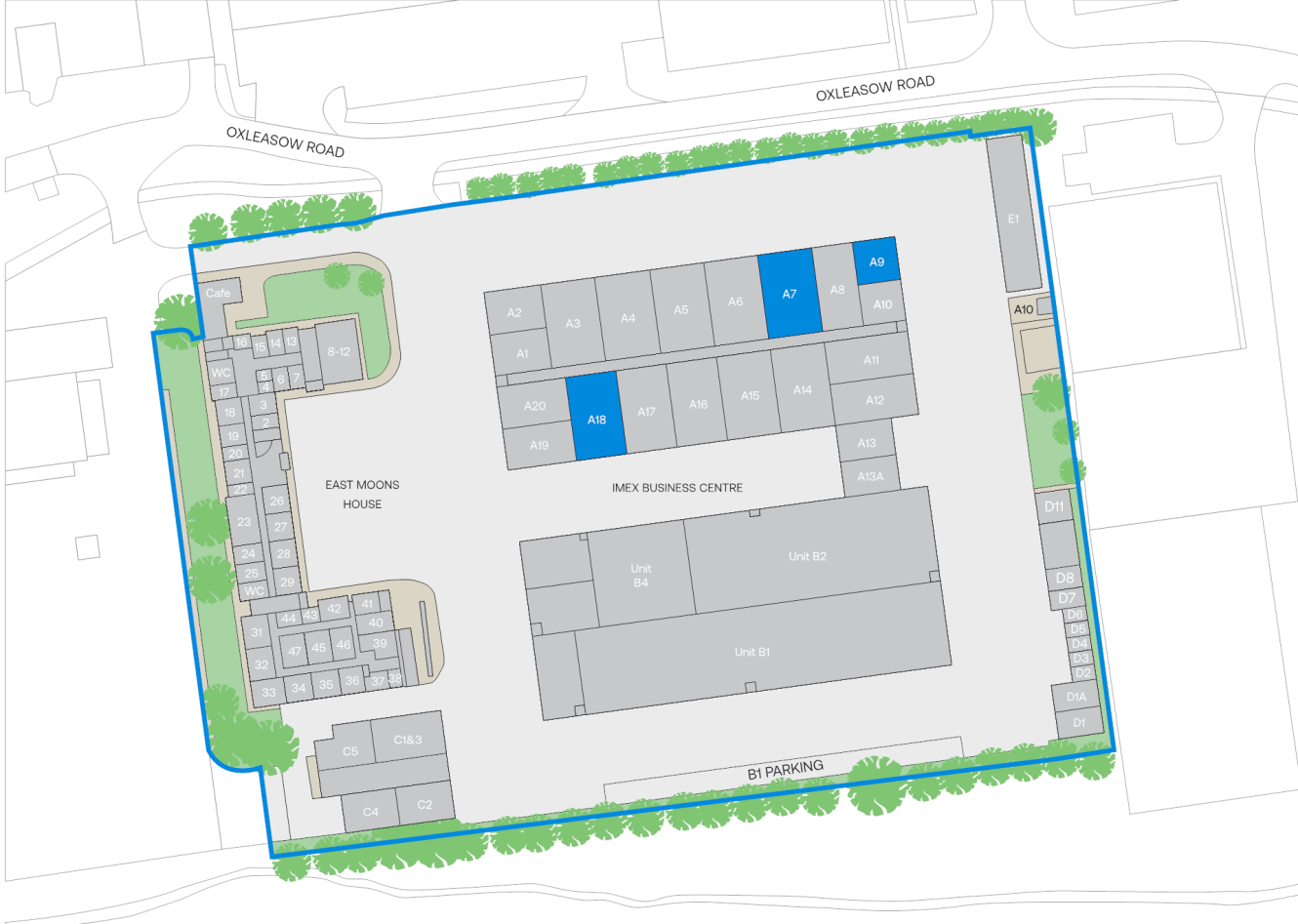 Situated in an established business area in Redditch, East Moons Moat Business Centre is located two miles from the town centre, approximately a half mile from the A4023 Coventry Highway and just 3 miles south of J3, M42, giving excellent access to the Midlands motorway network.