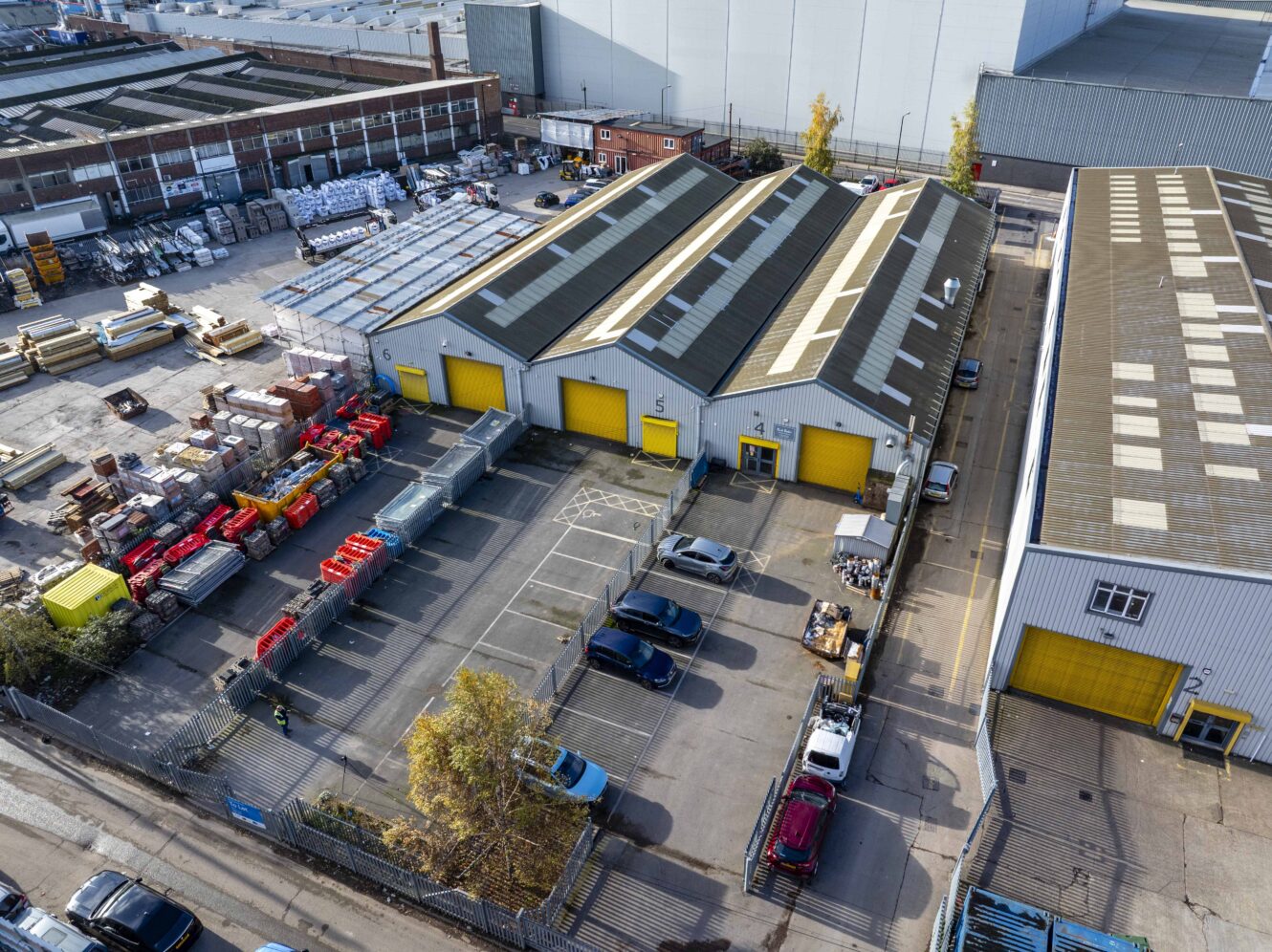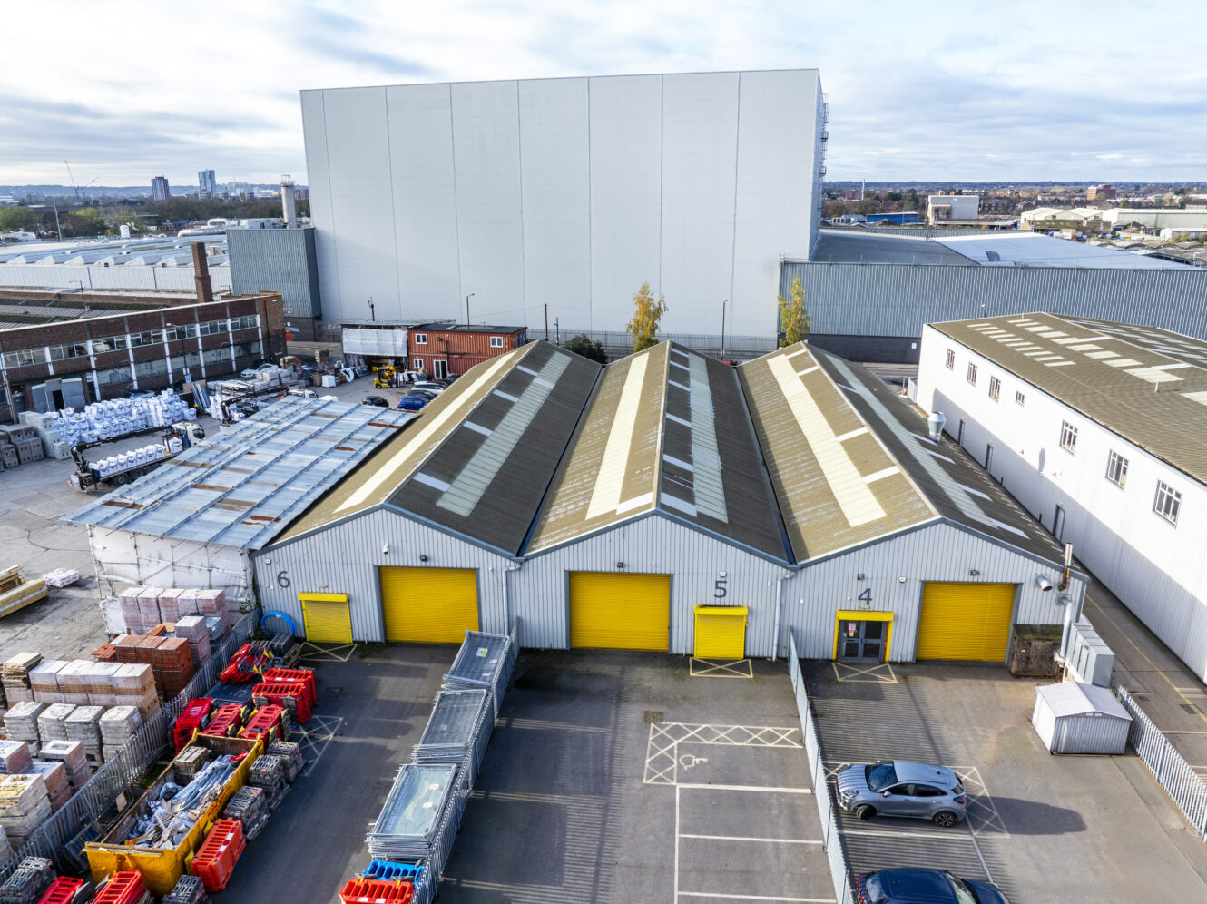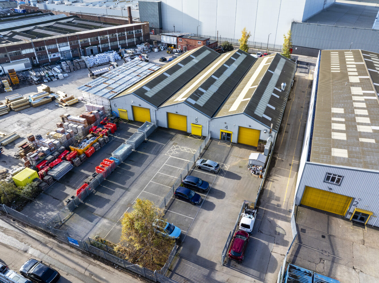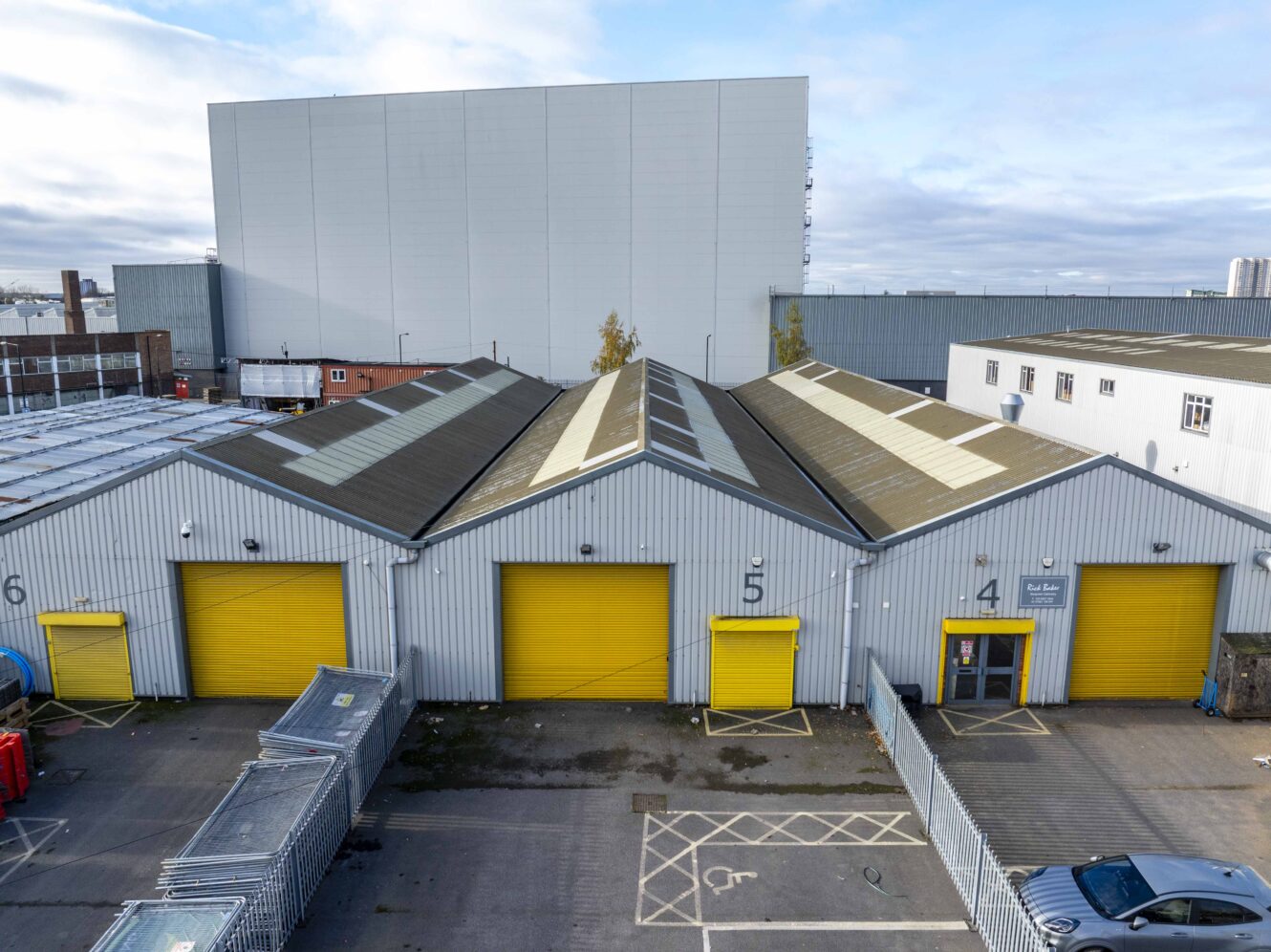 Unit’s 4 & 5 comprimise 2 recently refubished modern industrial unit’s which benefits from a mezzanine office area, electric roller shutter with surface level loading , W.C and 3,500 – 7,000 sq ft of yard area. The unit’s beneits from eaves height over 4m with an apex over 6m. The unit’s are available individually or combined.