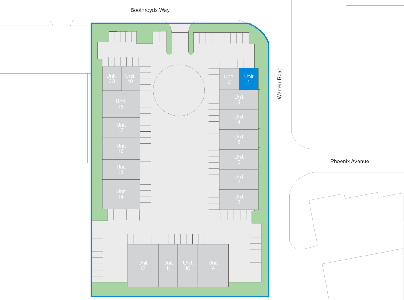 Unit 1 (781 sq. ft) are end-of-terrace workshop offering three-phase power, modern W/C facilities, and a bank of windows that bring in plenty of natural light. Access is via a personnel door, with additional double doors suitable for small van or car entry. The estate includes a large yard with ample parking, two EV charging points, and is fully secured with fencing, gated access, and 24-hour CCTV coverage.