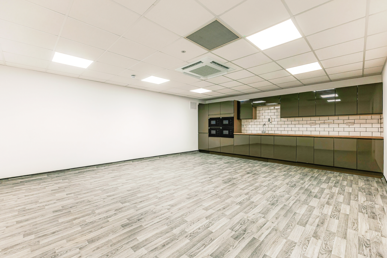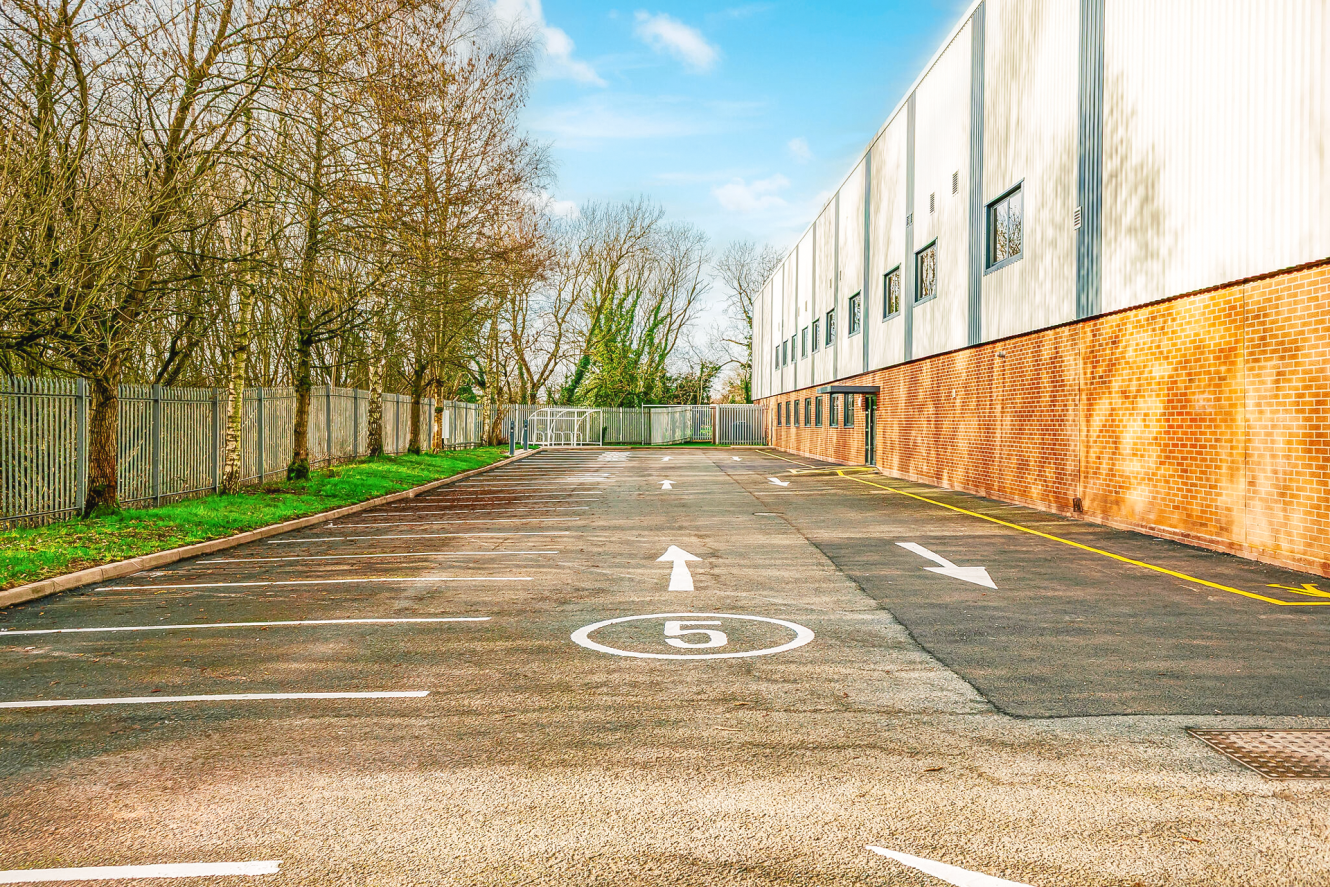 The property comprises a warehouse and ground floor offices and staff accommodation. The property was constructed in the mid 1990s and provides a nine-bay warehouse of steel portal frame construction under pitched profiled metal clad roofs which incorporate roof lights. The walls are traditional brick and block to the height of approximately 3m with external profiled metal cladding. Loading is via nine level access roller shutter doors in each of the bays accessed from a 35m service yard to the front. The warehouse benefits from an eaves height of 8.2m (27ft). Comprehensively refurbished to include: Power upgrade to 500 kVA, installation of additional roller shutter doors, full LED lighting throughout and refurbished office and welfare facilities.