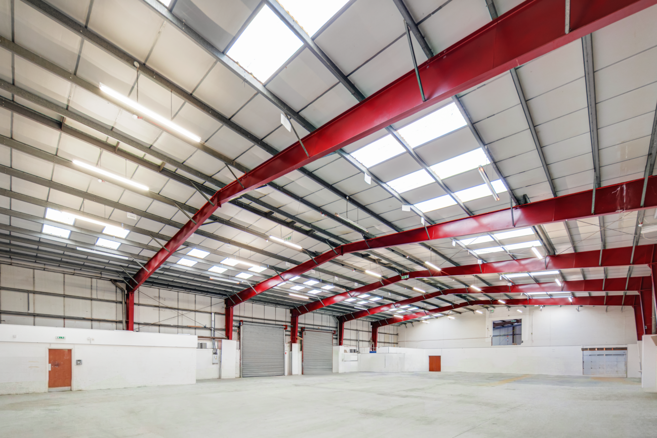 A detached warehouse of steel portal frame construction, with part brick part profile clad elevations, beneath an insulated pitched roof incorporating roof lights. The warehouse benefits from concrete floor and multiple vehicle access points, leading to a self contained secure loading area with concrete surface. Internally, there is office accommodation with a kitchenette and WC facilities.