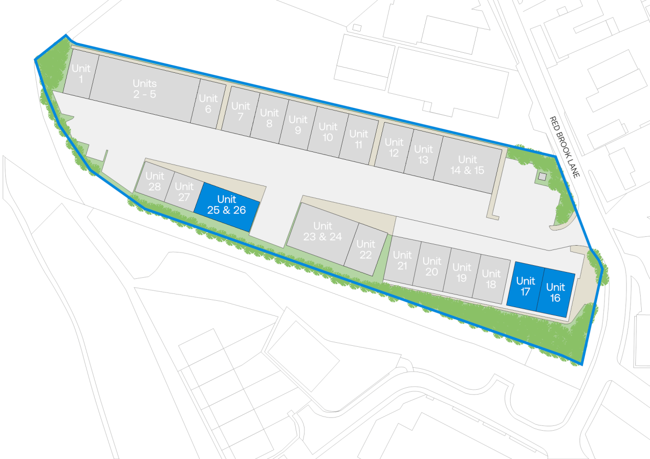 Kimberley Business Park is situated on Redbrook Lane being approximately two miles south of Rugeley Town Centre and six miles north east of Cannock and seven miles south east of Stafford respectively.