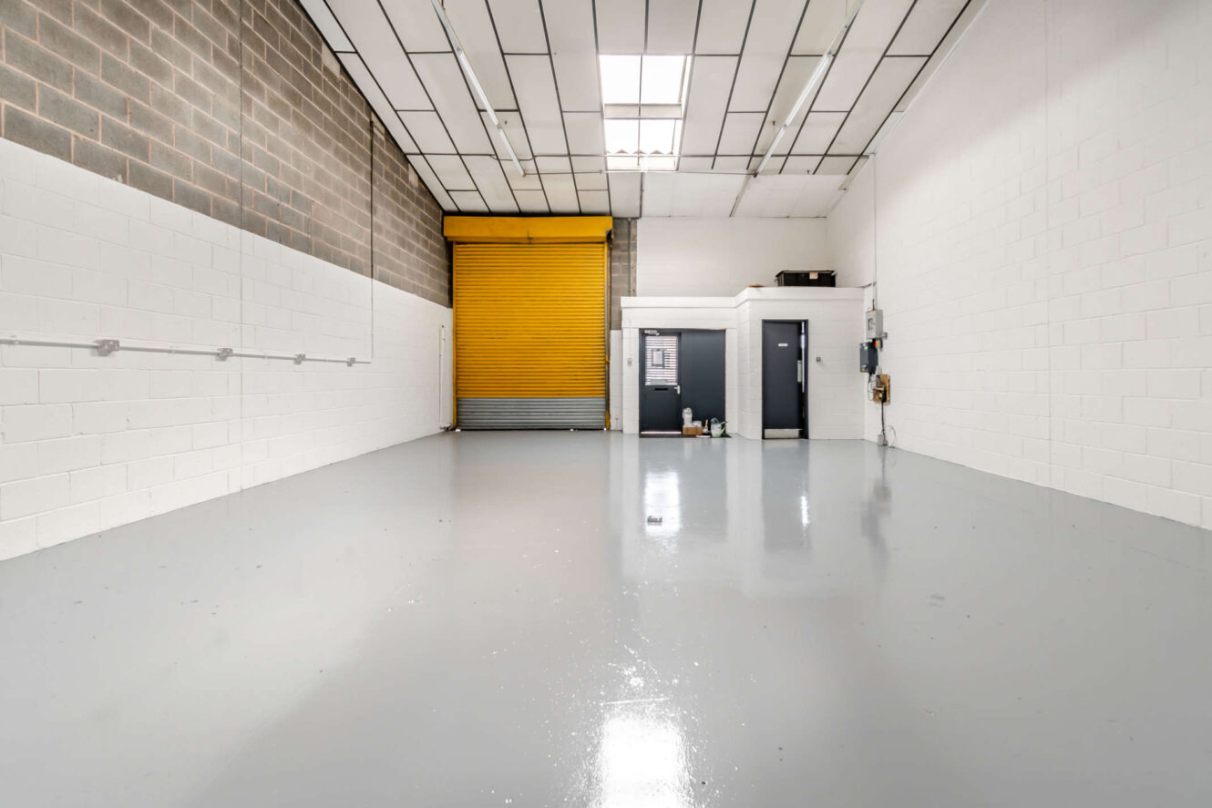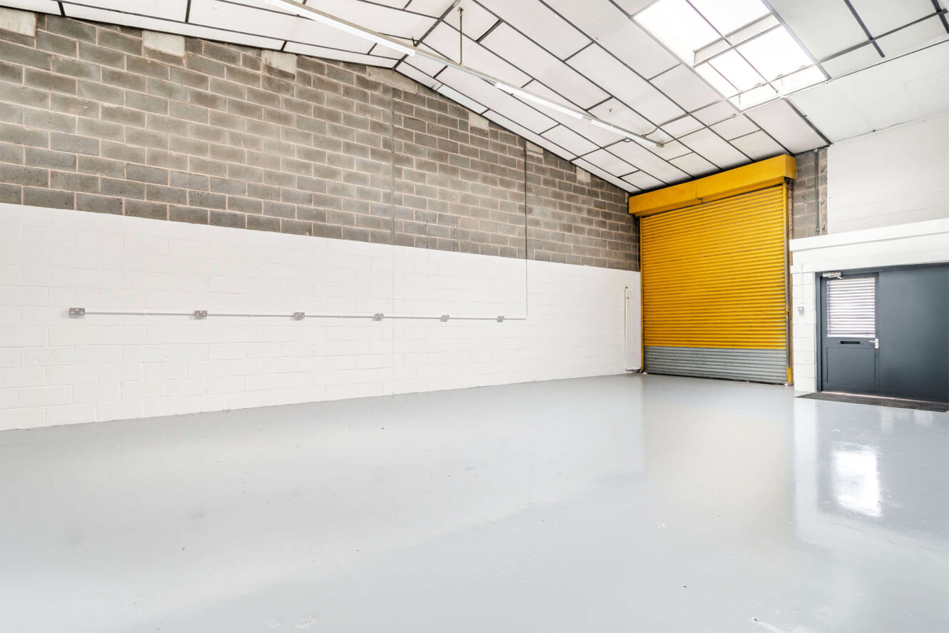 Unit A1 offers 684 sq ft and Unit A5 offers 1,093 sq ft of versatile business space, ideal for a range of light industrial or storage uses. The unit features a full-height roller shutter door for easy loading access, alongside a separate pedestrian entrance. It is constructed with durable brick/blockwork walls and concrete flooring.