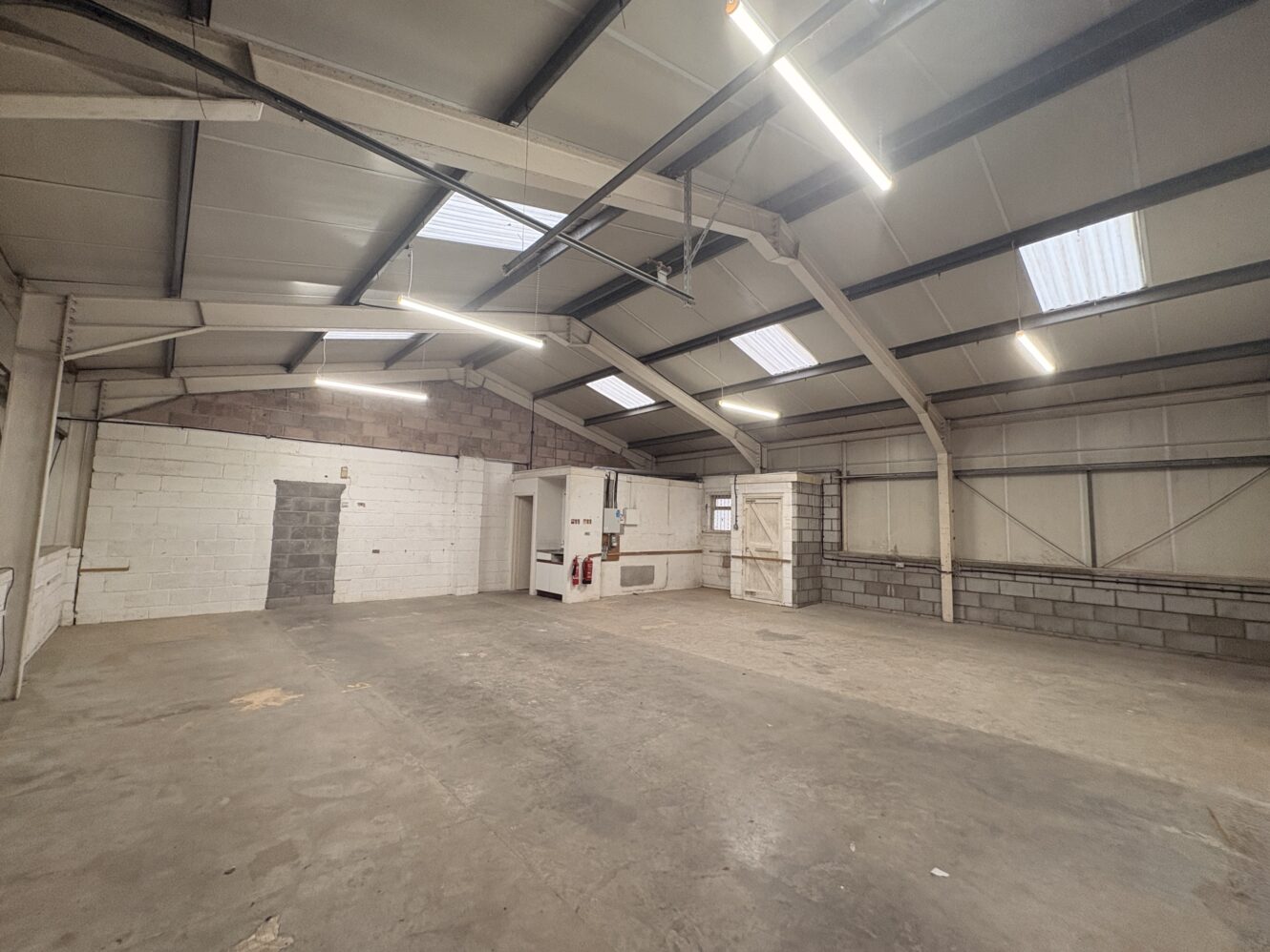 These units are of steel portal frame construction. Externally, the units have steel profile cladding. The roof is a dual pitched steel cladding sheets incorporating translucent glass reinforced plastic (GRP) roof lights. Internally, the units have W.C. facilities and LED lighting throughout. The units are accessed through an electronic roller shutter door. Unit 4 offers a small side yard.