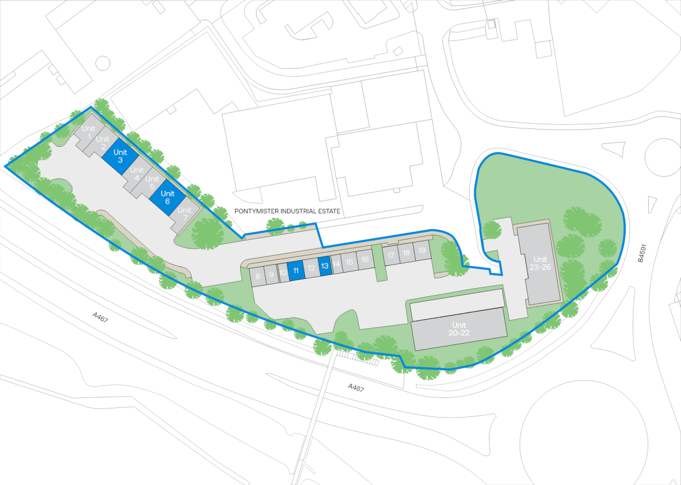 Pontymister Industrial Estate is a popular trade and industrial location – occupiers on the estate include Screwfix. It is also adjacent to Tesco Extra, Aldi and KFC. The estate is conveniently situated adjacent to the A467 dual carriageway which provides direct access to Junction 28 of the M4 Motorway, approximately 4 miles to the south.