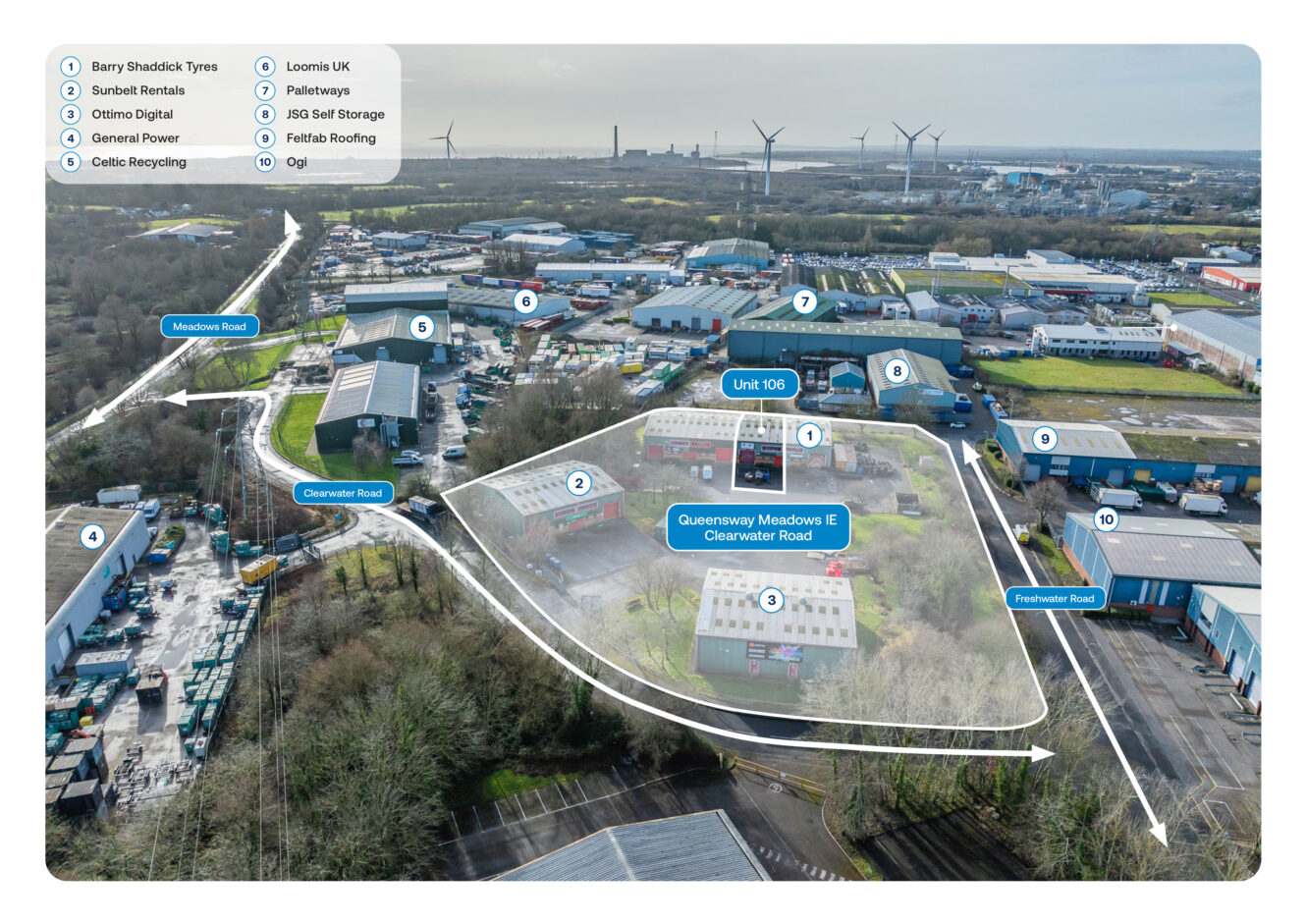 Queensway Meadows is one of the principal established industrial estates in Newport, approx. 3 miles south-east of the town centre and 15 miles east of Cardiff with access to both Junctions 24 & 28 of the M4. Located in close proximity to the Southern Distributor Road (SDR) for direct access to Junction 24 (M4). The eastern side of Newport is well positioned to serve the wider regional and national markets with the interchange of the M4 and M5 less than 25 mins drive. The abolition of the Severn Bridge tolls & improvement in road links has increased the popularity of the location. The Port of Newport is less than 2 miles away and local amenities are within walking distance (Newport Retail Park).