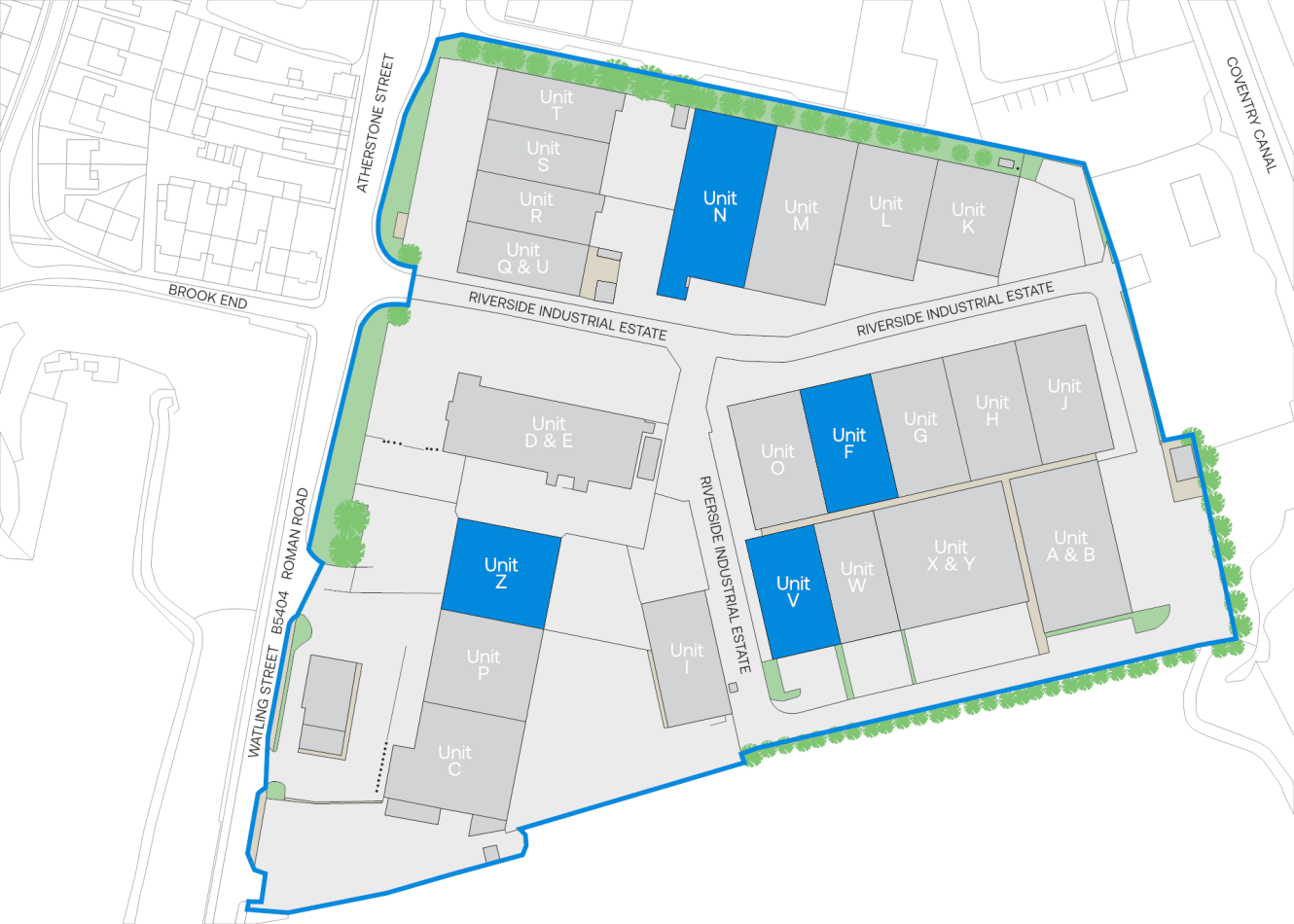 Riverside Industrial Estate is located within an established industrial area to the south of Tamworth town centre, close to the A4091 and approximately 2.7 miles from Junction 10 of the M42. The Estate benefits from a prominent position, fronting the B5404 Atherstone Street providing excellent visibility.