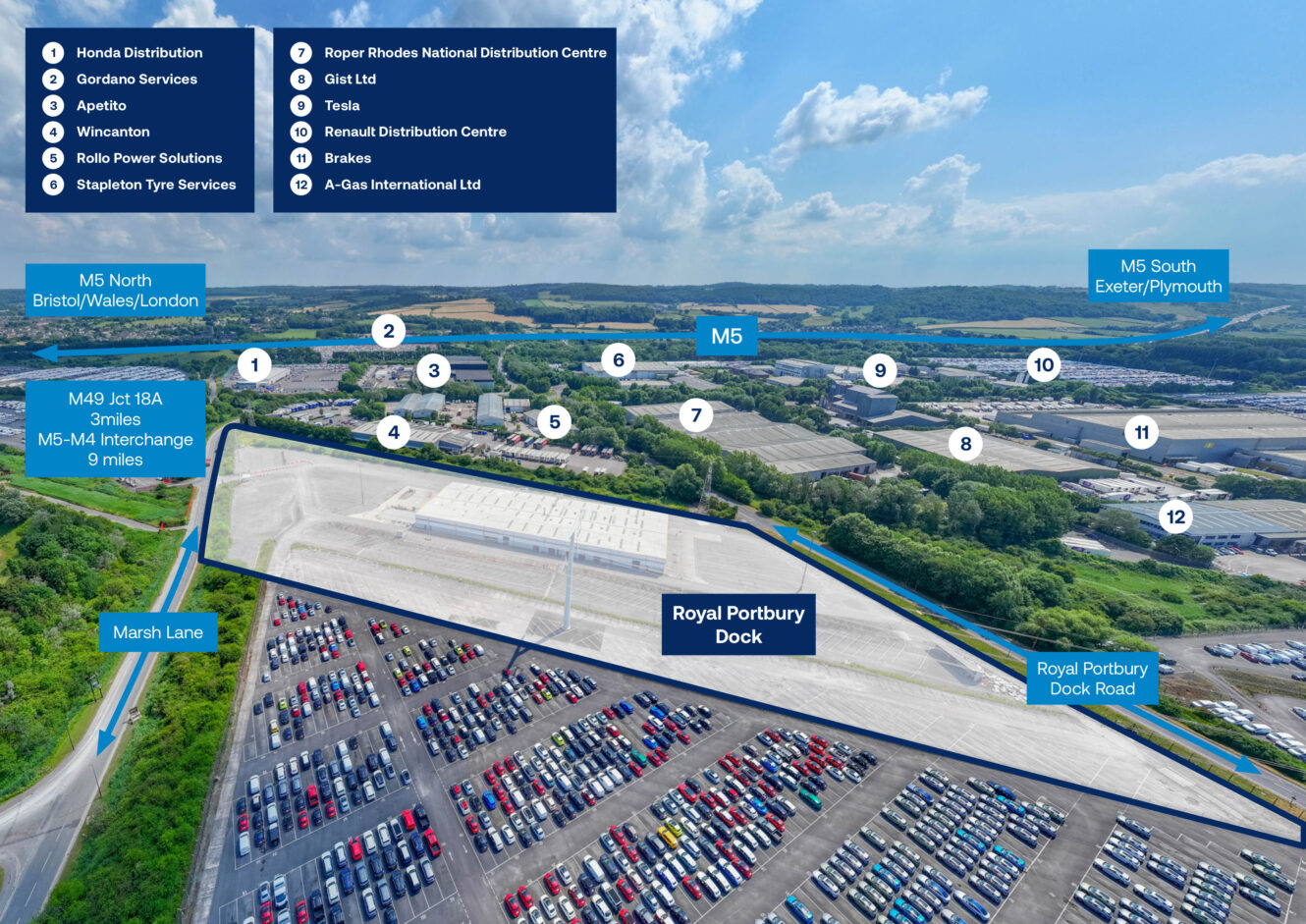 The location has attracted many occupiers including Brakes, Lafarge, Wincanton, Roper Rhodes, Kerry Foods and Stapleton Tyres. Junction 18a of the M49, the link to South Wales, is approx. 3 miles to the North East with the M4/M5 interchange a further 6 miles distant.