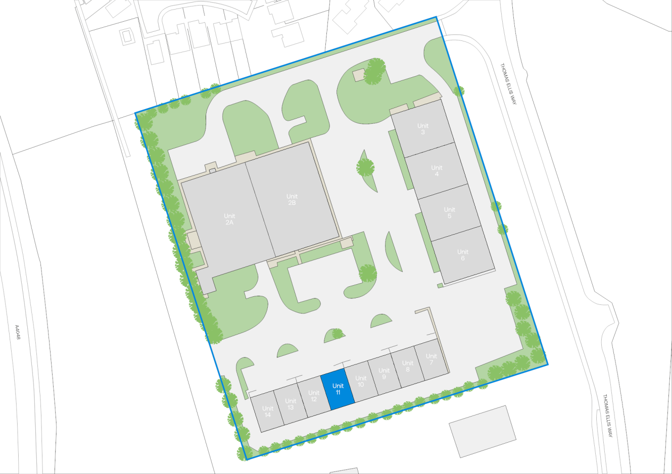 The estate is situated off Thomas Ellis Way which joins Beaufort Road and in turn the A4048 (Tredegar Bypass). The A4048 provides access to the A465 Heads of the Valley Road approximately 1 mile to the north and J28 of the M4 motorway approximately 20 miles to the south. The site is approximately ½ mile north east of Tredegar town centre.
