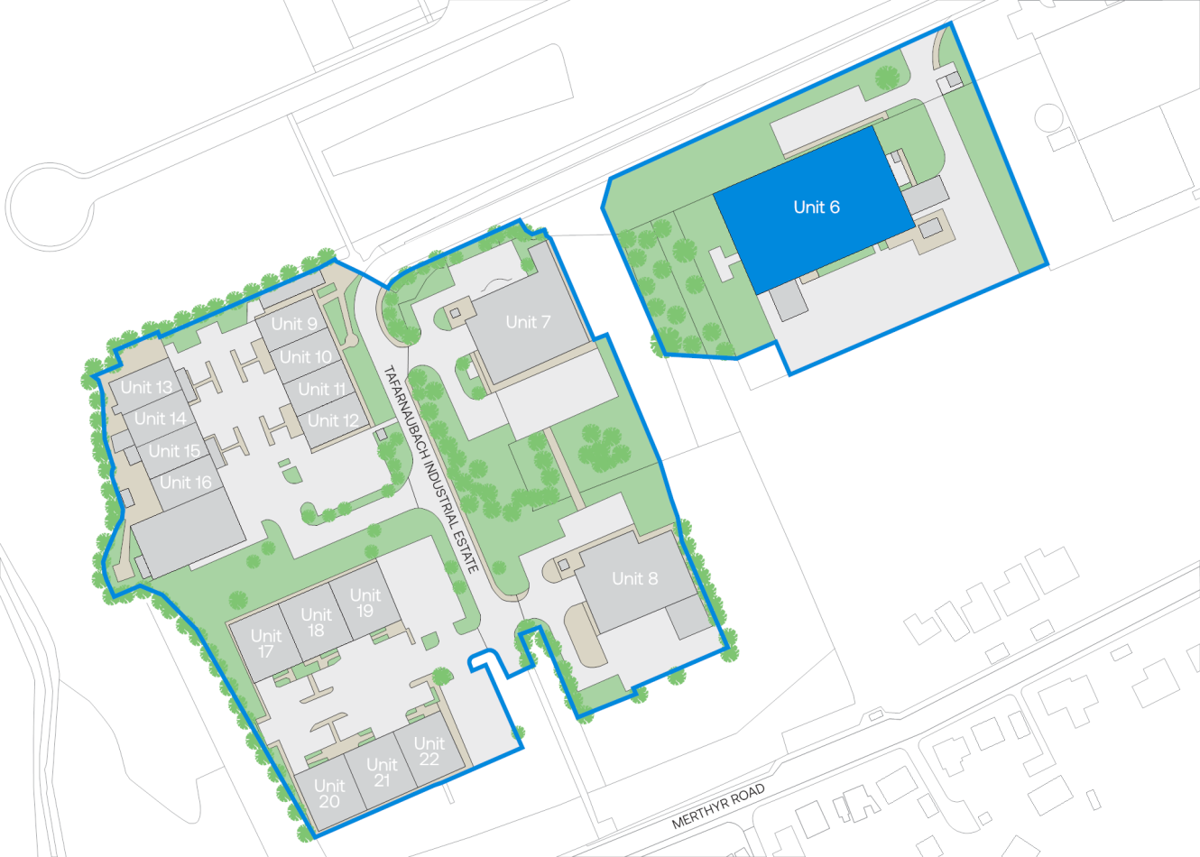 The unit is located on the well established Tafarnaubach Industrial Estate in Tredegar, just north of the Heads of the Valleys Road. The unit is approximately two miles from Tredegar and five miles east of Merthyr Tydfil.