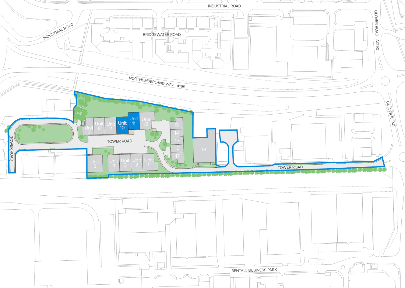 Washington New Town is ideally situated between the A1(M) and A19 providing easy access to the North East region. Newcastle, Sunderland and Durham are within 15 minutes’ drive time and Teesside is within 20 minutes. Glover Industrial Estate is located off the A195 Northumberland Way close to the A1231 Sunderland Highway giving direct dual carriageway access to both the A1(M) and A19.