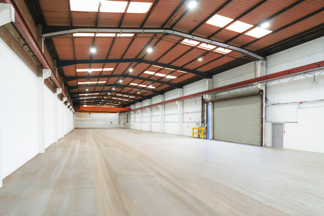 This high-quality, well-specified industrial warehouse is currently undergoing a comprehensive refurbishment. Situated on a large, secure site, the unit benefits from a 8.5 m eaves height, three level access loading doors, two ten tonne gantry cranes running the length of the warehouse and an ancillary office block. The building is of steel portal frame construction with profile metal cladding to the roof, offering durability and efficiency suitable for a variety of industrial and logistics uses.