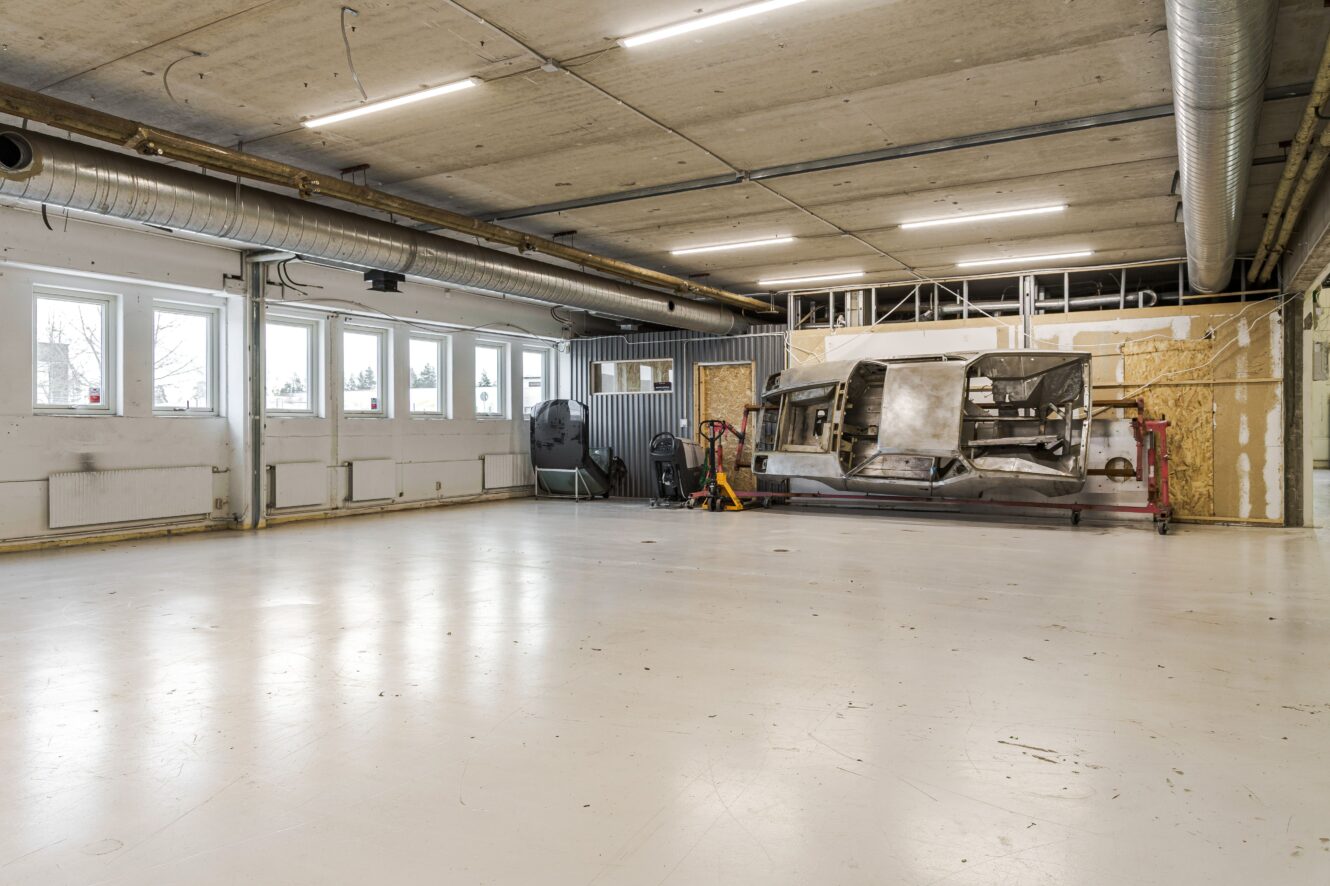Unit 8: Kombinerad lager- och kontorslokal på totalt 330 kvm, där lagerdelen om 165 kvm ligger i markplan med takhöjd på cirka 3,5 meter, markport, utslagsvask och WC. Kontorsytorna om 165 kvm ligger en trappa upp och innehåller pentry, WC och omklädningsrum med dusch. Planlösningen kan användas som öppet kontorslandskap eller delas upp i mindre kontorsrum och mötesytor. Utanför porten finns fri parkering för två bilar och möjlighet att hyra fler inom området.